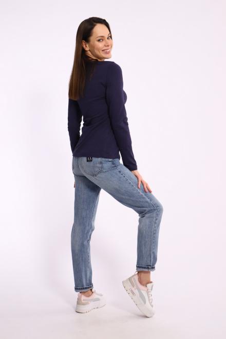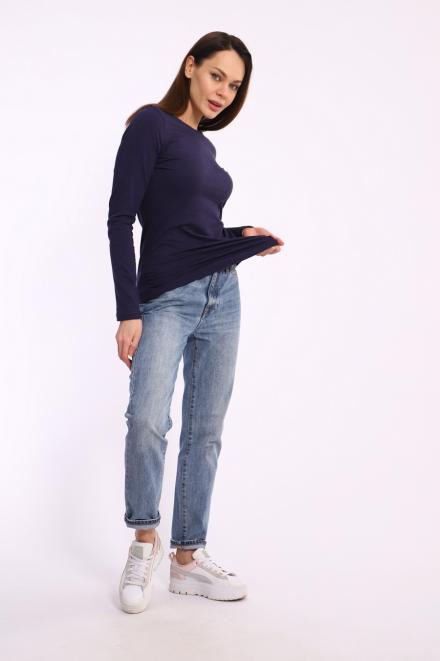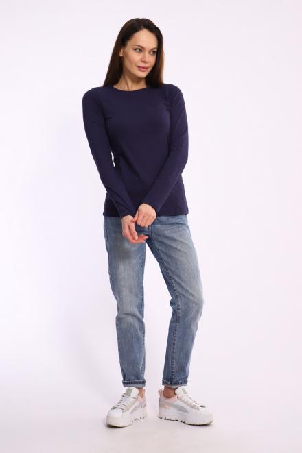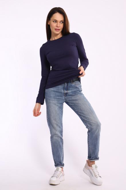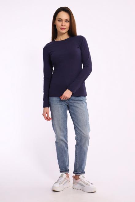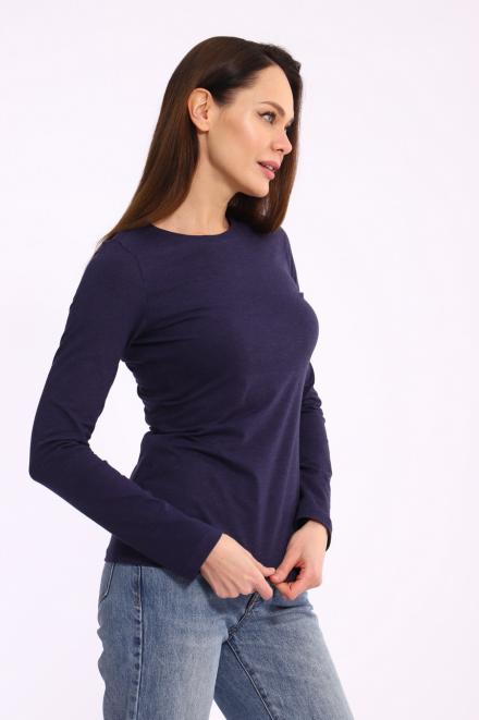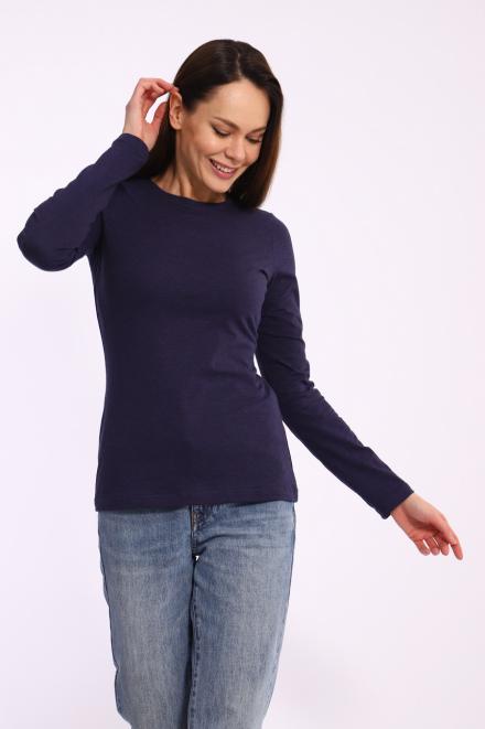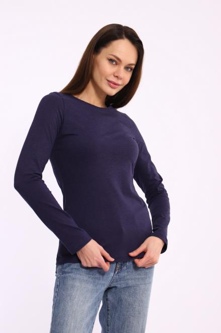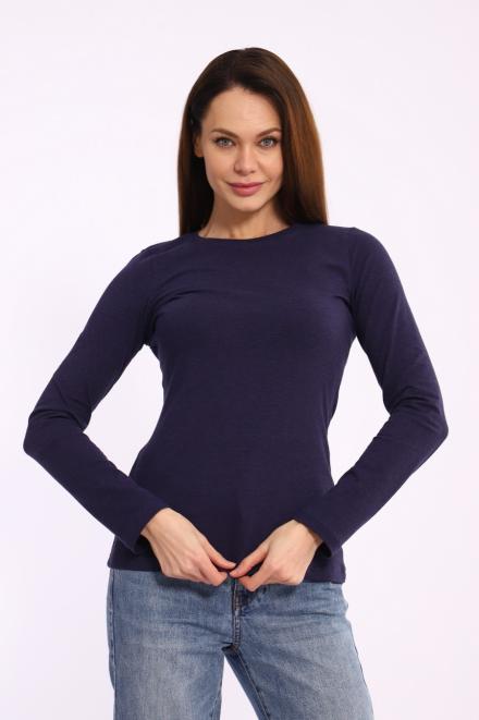 Лонгслив женский из кулирки с лайкрой темно-синий меланж