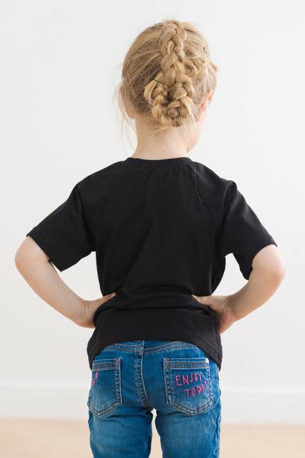 Трикотажные футболки приятные на ощупь, они практически не выцветают со временем и дарят свободу движения. Чтобы кожи касались только натуральные материалы, мы шьем из хлопковой кулирки и вискозы. Кулирное полотно мягкое, но прочное, в меру эластичное, но сохраняющее форму. Вискоза может давать усадку по длине – учитывайте это, когда покупаете детские вещи.
