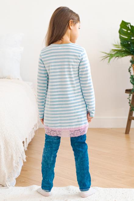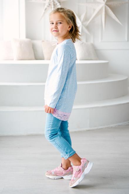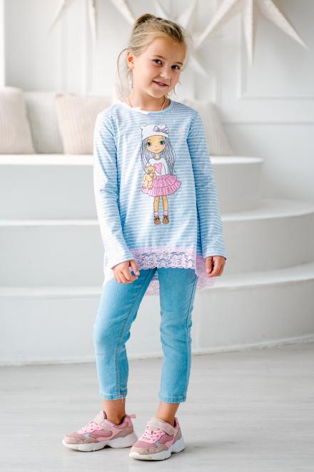 Мы шьем туники из милано – смесового материала на основе хлопка с полиэстером. Благодаря добавлению синтетики он становится износостойким и легким в уходе – на нем не образуются катышки, а практически любые загрязнения без труда отстирываются. Так как детские вещи эксплуатируются гораздо активнее, они должны быть прочными и удобными, и трикотаж подходит для этого как нельзя лучше. Для школы в каталоге Амадэль есть туники насыщенного темно-синего цвета с кружевом по низу. Они подходят к юбке или брюкам из того же материала, которые можно найти в других разделах нашего сайта.