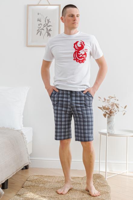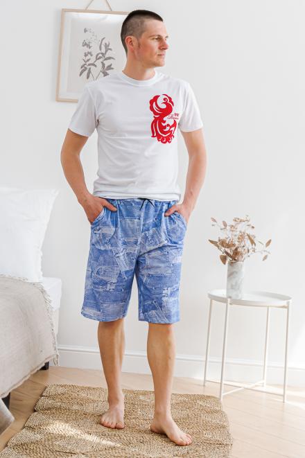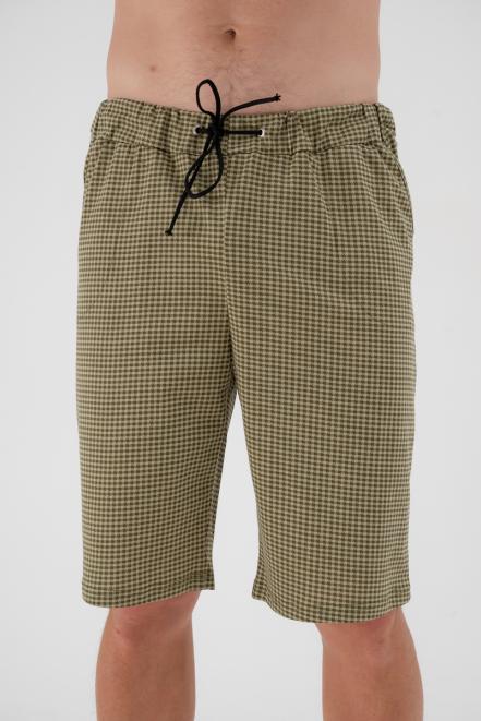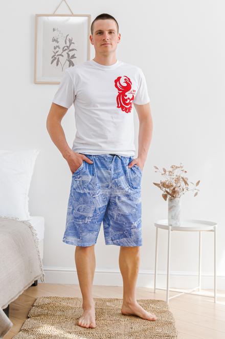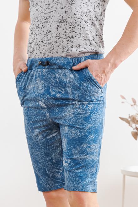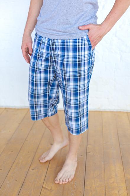 Бриджи из нашего каталога шьются в одном фасоне – это штаны прямого кроя с боковыми карманами и резинкой с дополнительным шнурком. По длине мужские бермуды из кулирки выше колена, из бязи – чуть ниже колена. В ассортименте производителя Амадэль доступны материалы разной расцветки – в синих и зеленых тонах, цвета хаки, разнообразная клетка и абстрактные узоры.