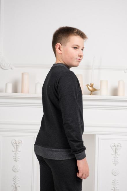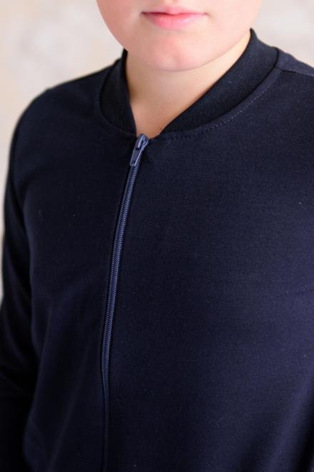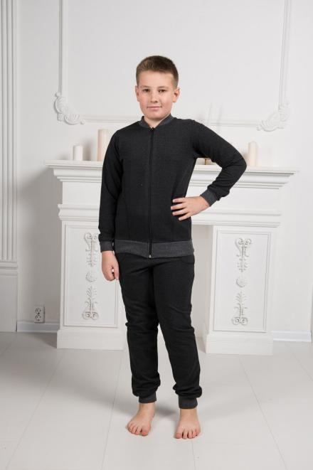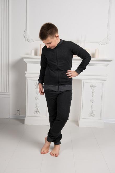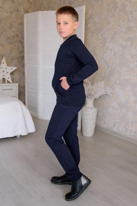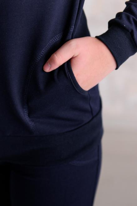 Костюмы из интерлока ближе к домашним, поэтому у них более простой крой: прямые брюки без манжет и свободная кофта без молнии и капюшона. В таком трикотажном комплекте приятно проводить время дома, он располагает к отдыху и расслаблению. Подростковые варианты из футера можно отнести к спортивным, они состоят из брюк с манжетами по низу и толстовки на молнии. И на штанах, и на кофте есть небольшие карманы. По цветовой гамме (индиго, антрацит) они больше подходят мальчикам, но по модели это унисекс.