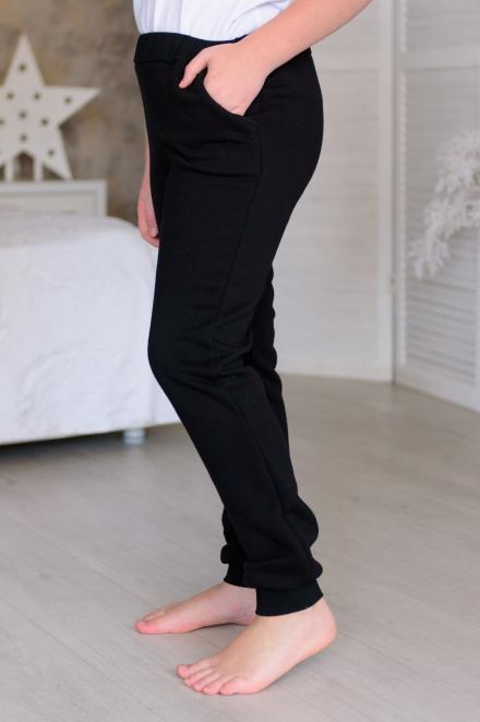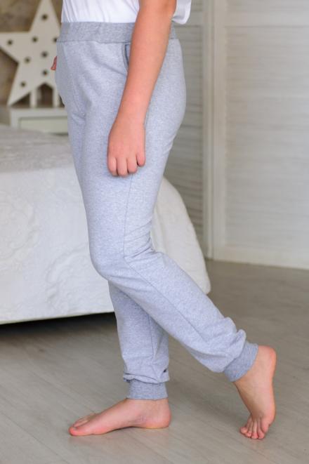 Брюки в этом разделе сшиты по одной модели – широкая резинка на поясе, штанины прямого кроя с манжетами по низу, два небольших кармана спереди. Джоггеры – актуальный фасон в подростковой среде, так как они удобные и стильные, в том числе в городской среде. Некоторые трикотажные модели декорированы принтами, другие остались однотонными.