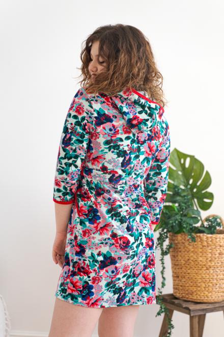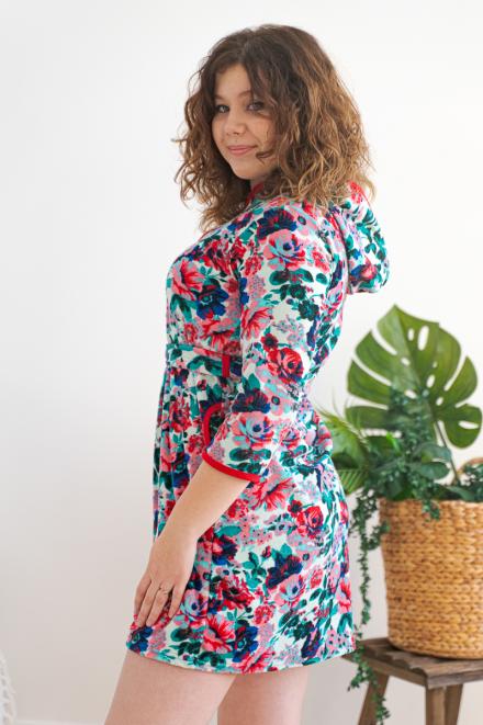 Халаты обычно шьются свободными, чтобы их было удобно надевать и носить, поэтому они просто запахиваются и фиксируются поясом. Но в подростковом возрасте уже важно подчеркнуть формирующийся силуэт, поэтому у девушек становятся популярными приталенные модели на молнии. Банные халаты длиной примерно до колена, домашние могут быть короче, рукава у большинства моделей чуть ниже локтя.