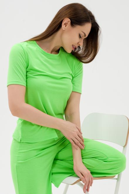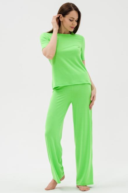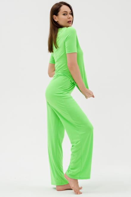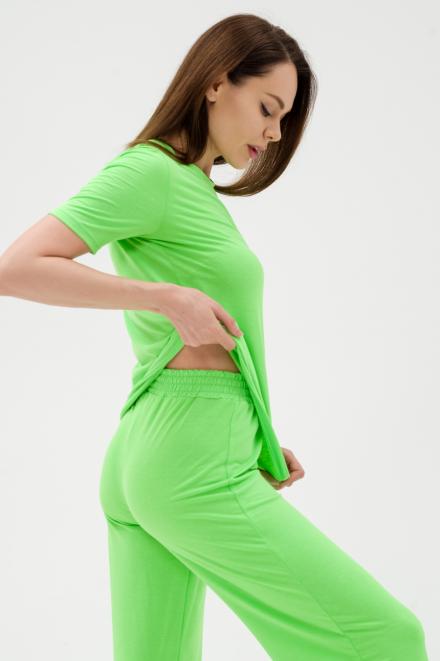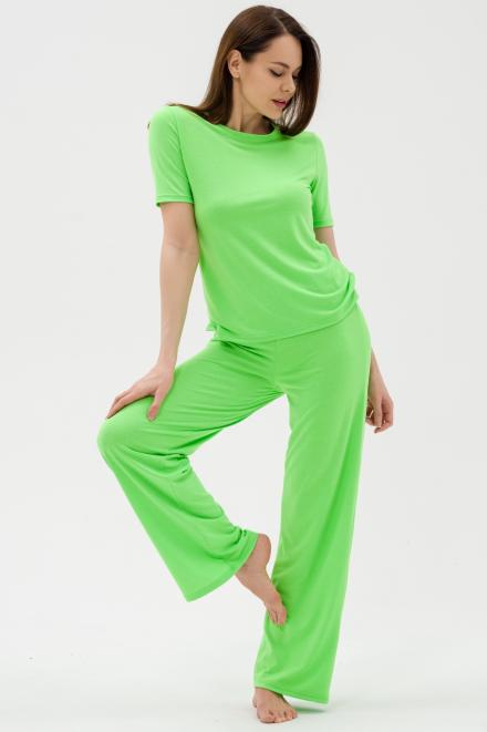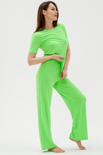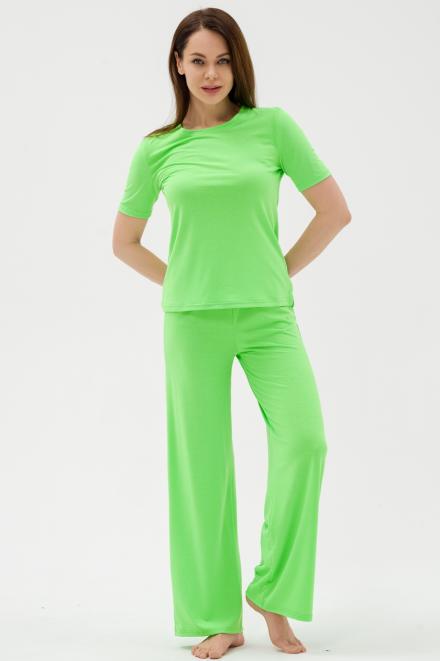 Костюм женский из футболки и брюк из вискозы Леопард неон зеленый