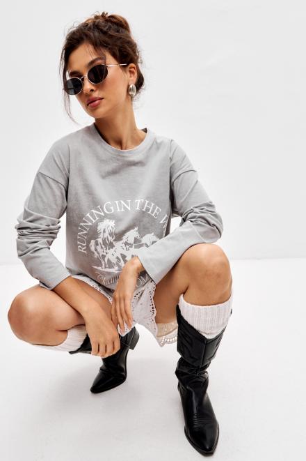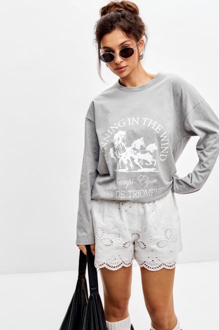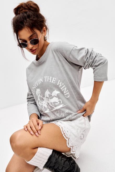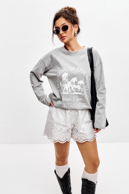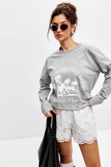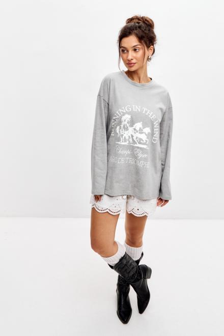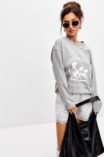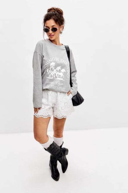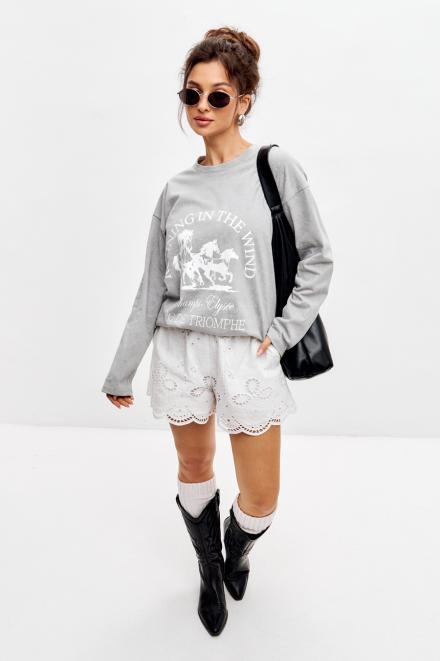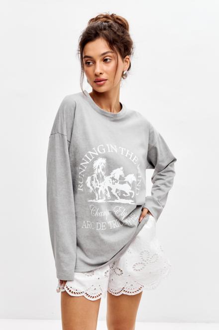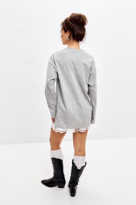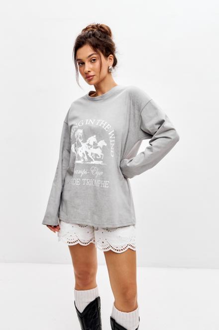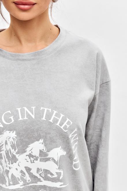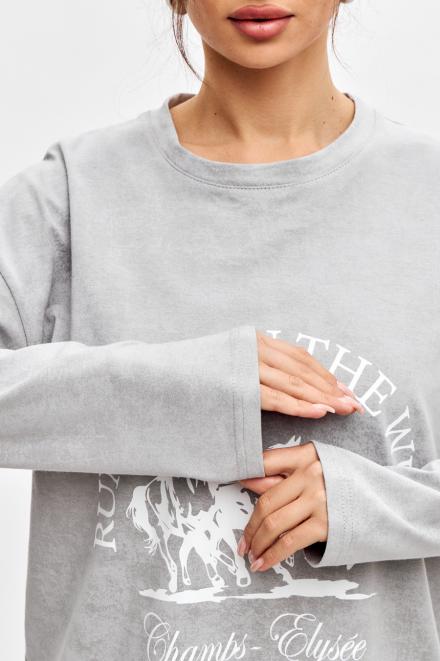 Толстовка на молнии из футера 3х нит.начес Сова серый