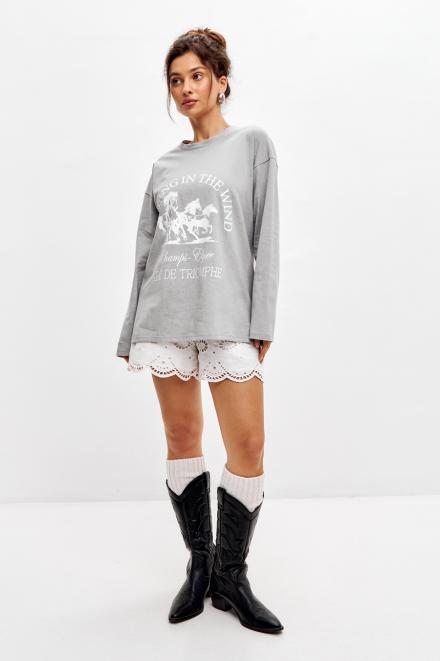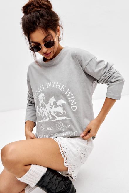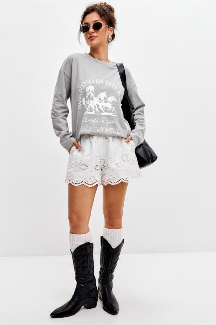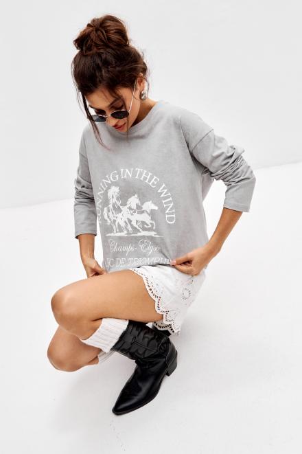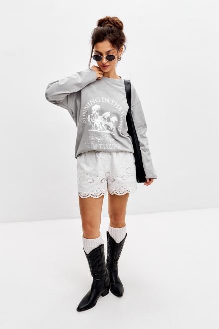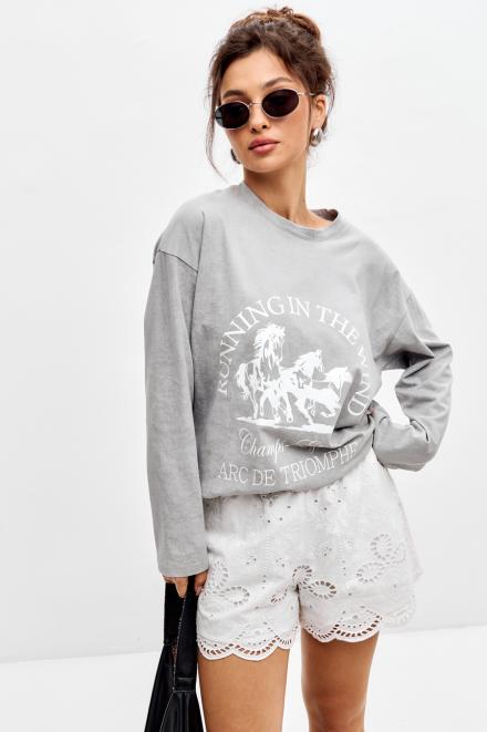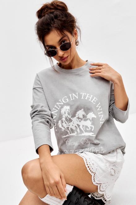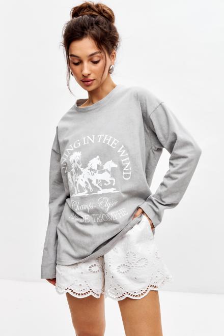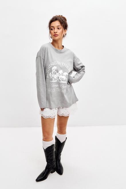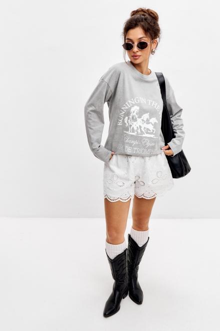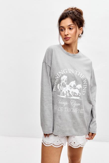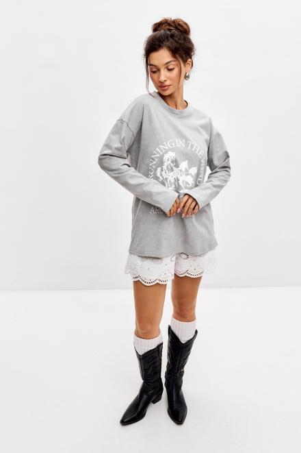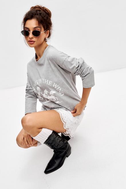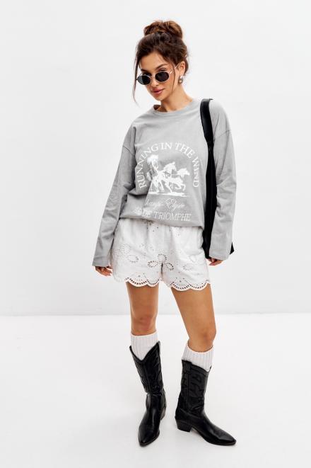 Толстовка на молнии из футера 3х нит.начес Сова серый