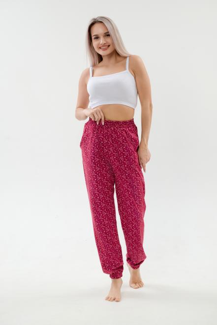 В зависимости от фасона женские штаны могут быть домашними, спортивными, повседневными и даже «парадно-выходными». Брюки на все эти случаи представлены на этой странице: модели из футера подойдут для утренних пробежек или прогулок с собакой, летние широкие штаны из вискозы или штапеля будут органично смотреться в офисе, а в одежде из кулирки приятно спать.