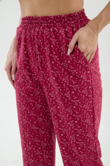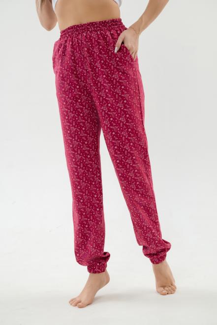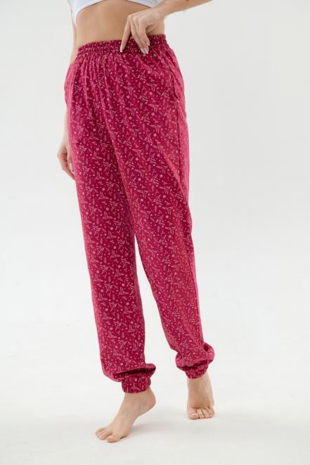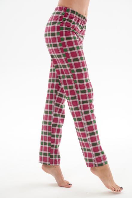 Брюки женские домашние из кулирки Барокко красно-зеленая клетка