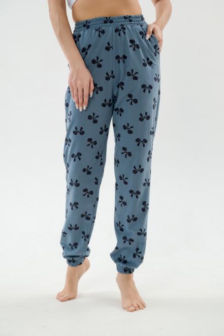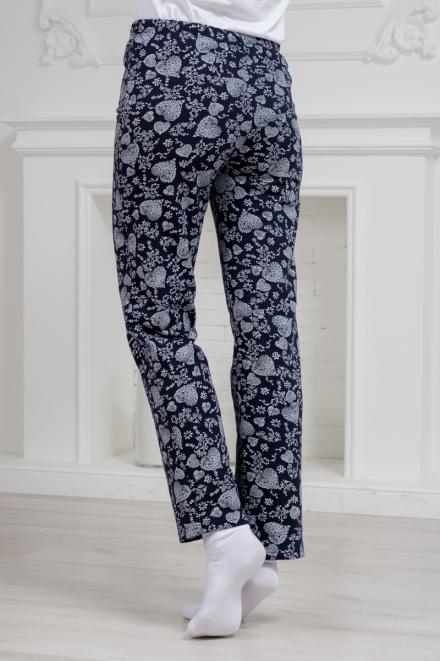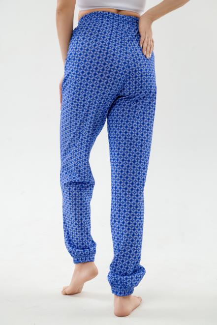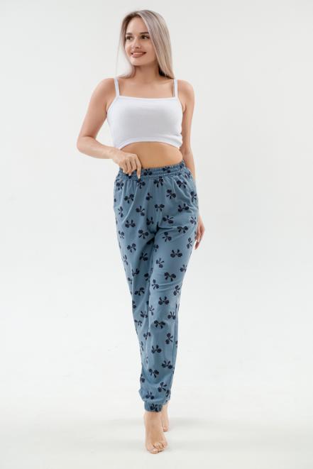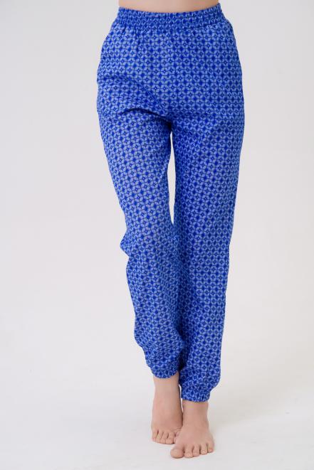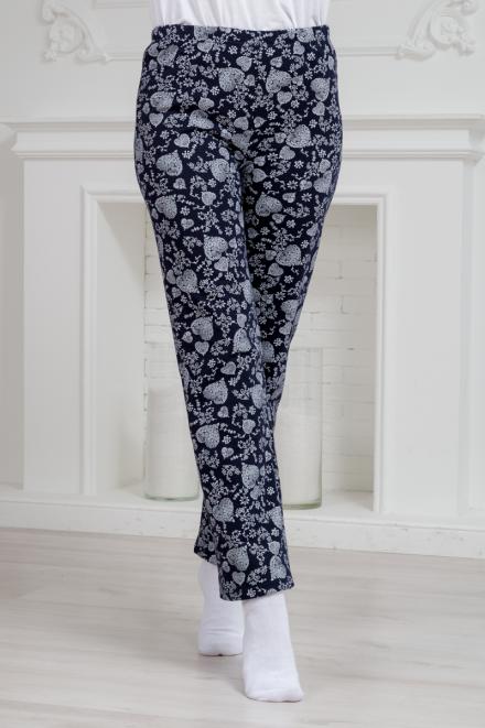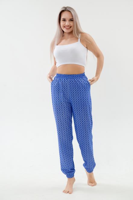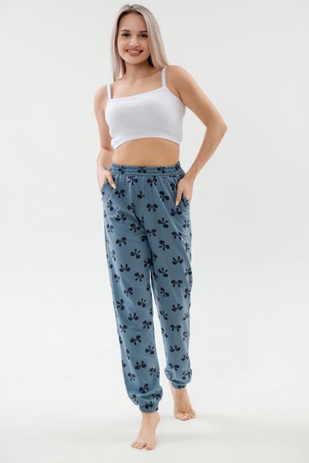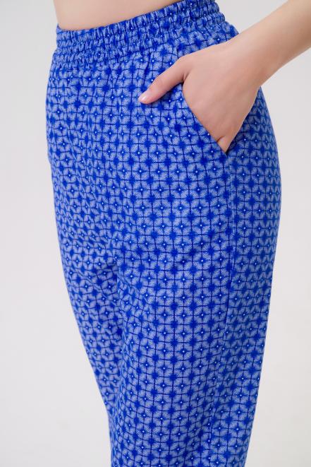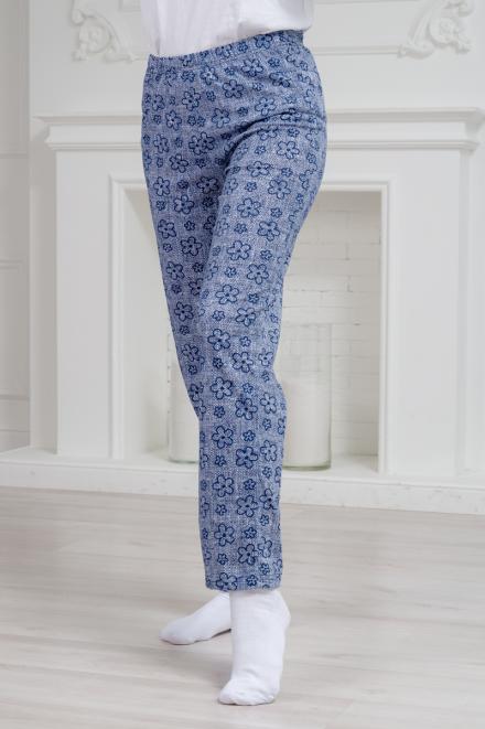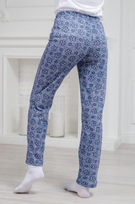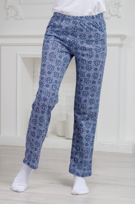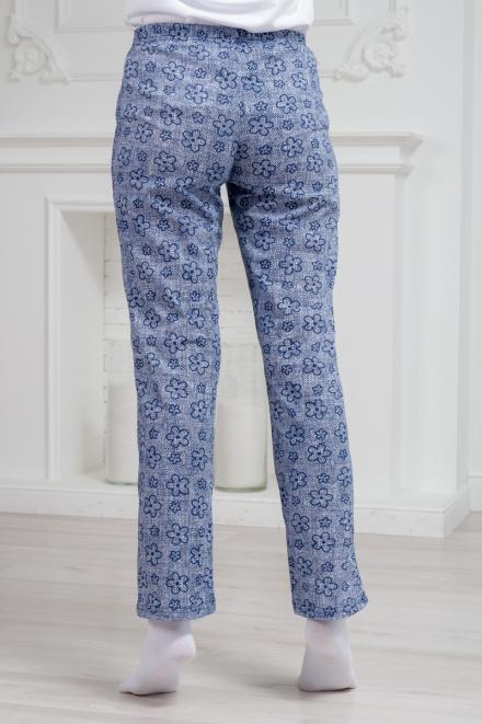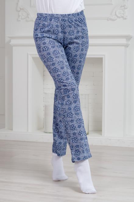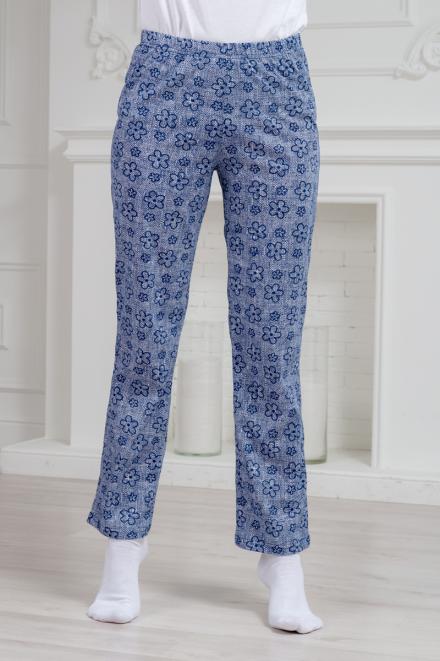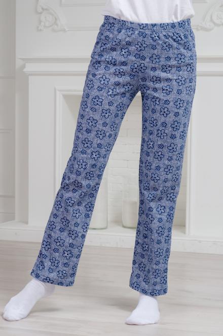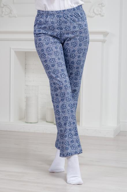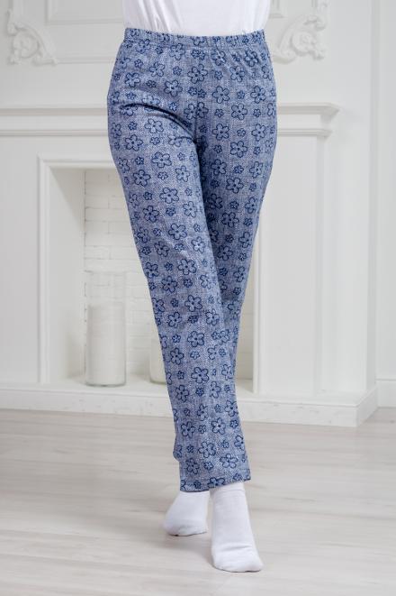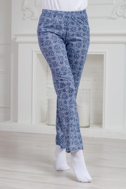 Брюки женские домашние из кулирки Барокко лен цветы синий