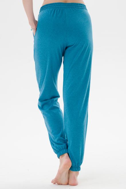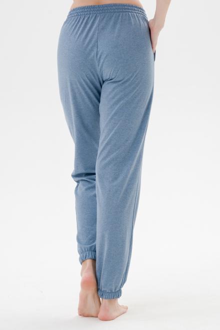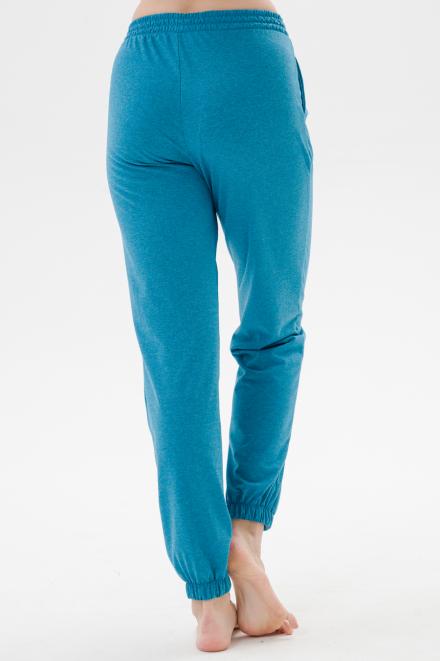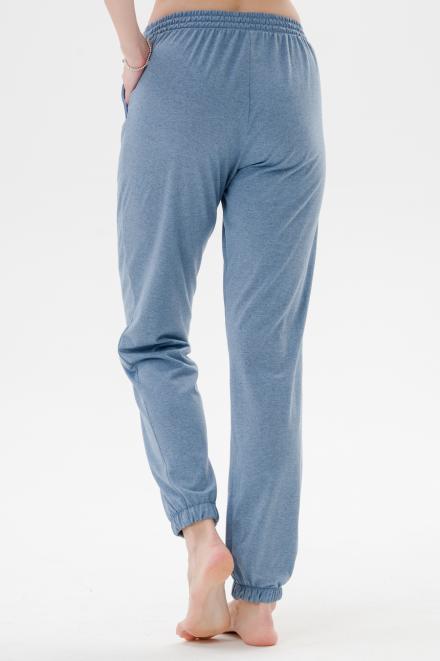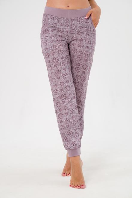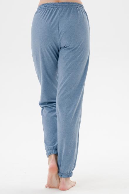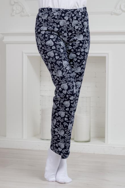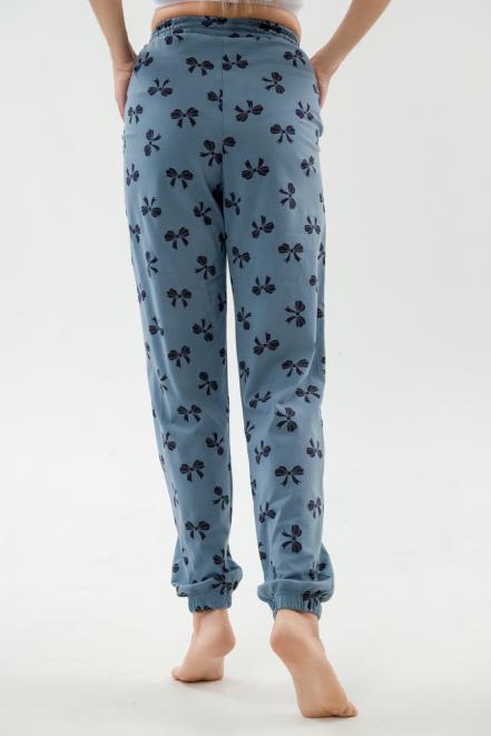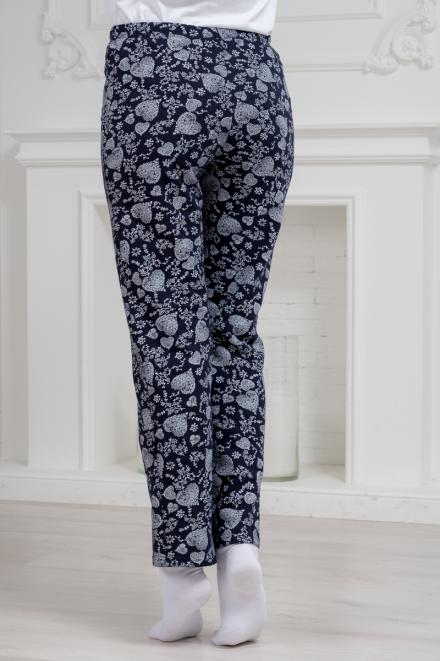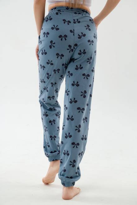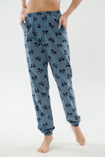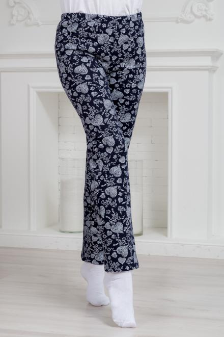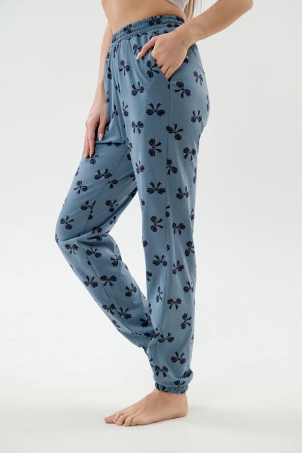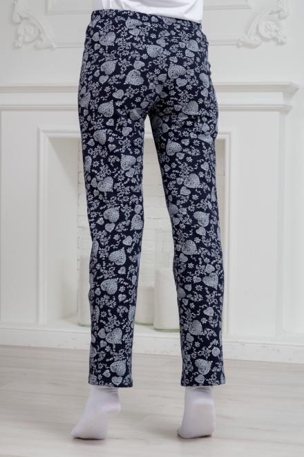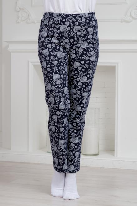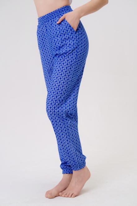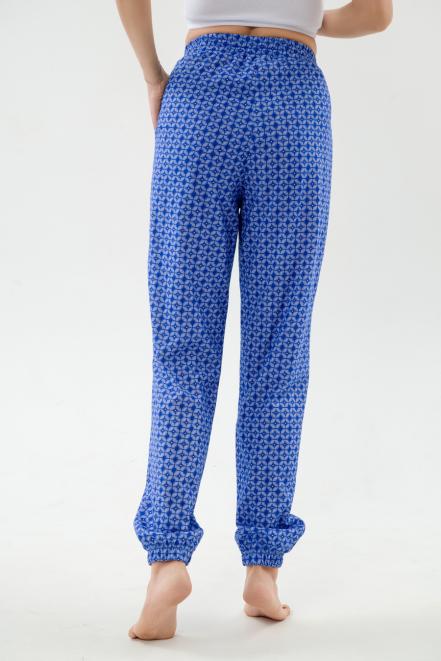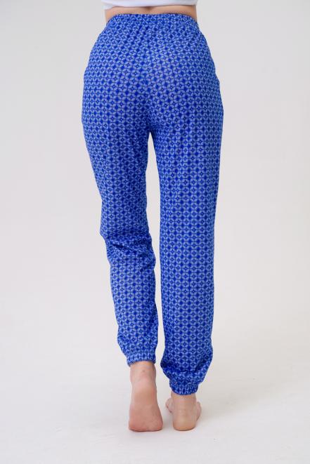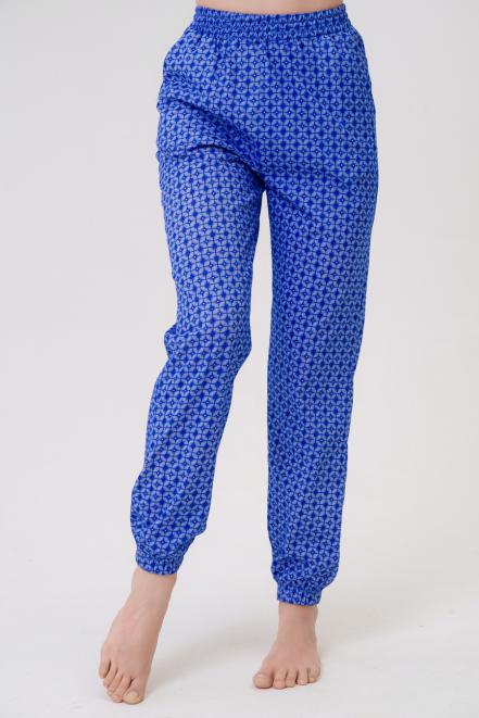 Брюки женские домашние из кулирки Барокко лен цветы синий