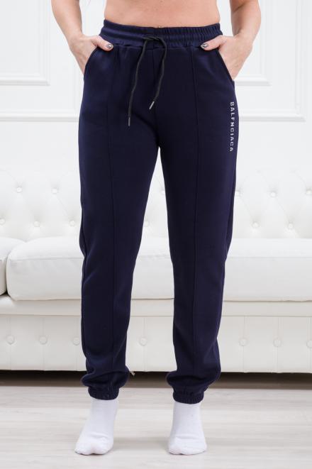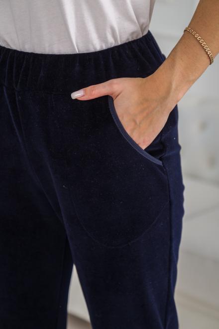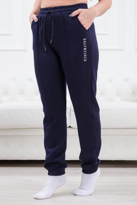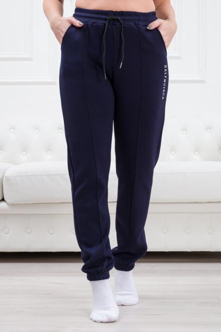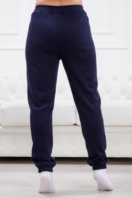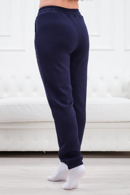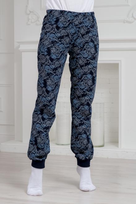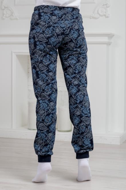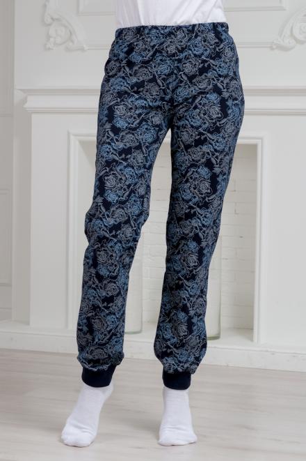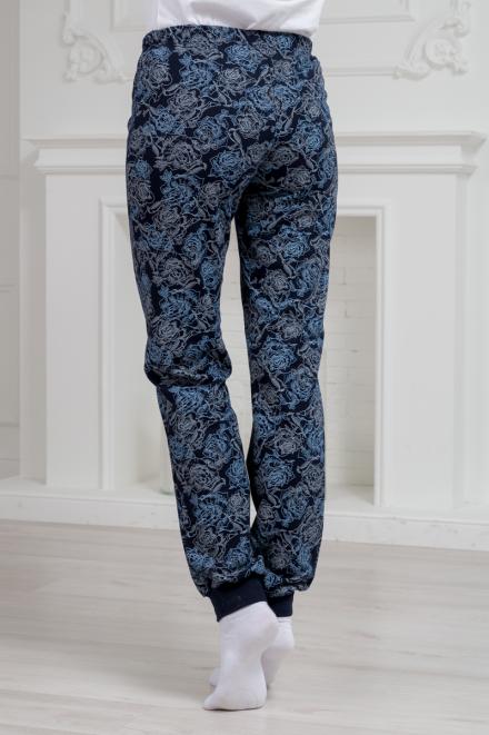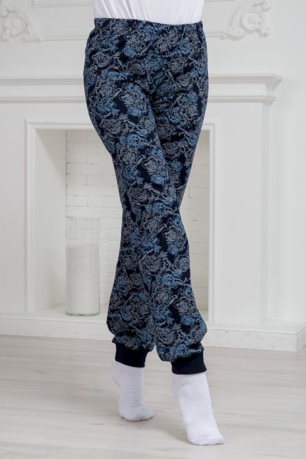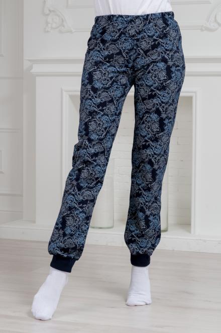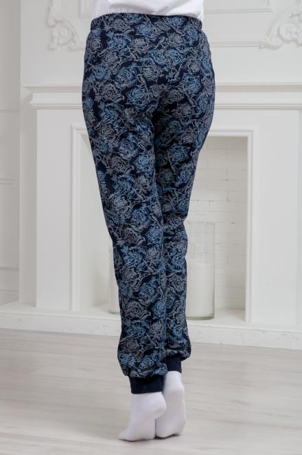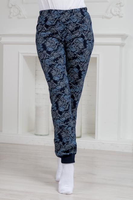 Брюки женские домашние из футера на манжете розы на темно-синем