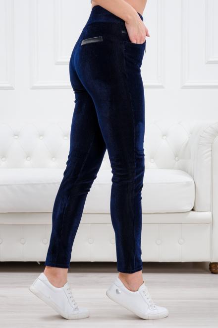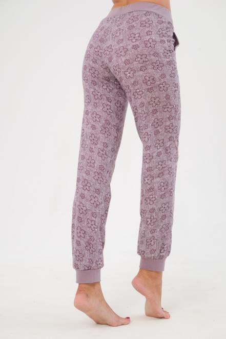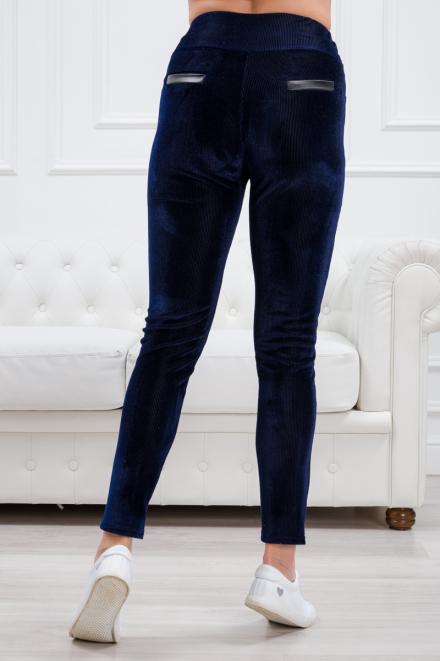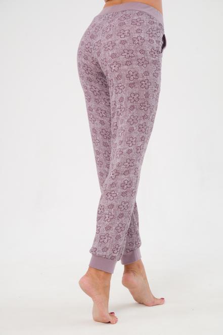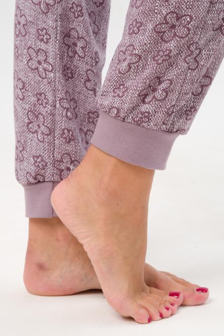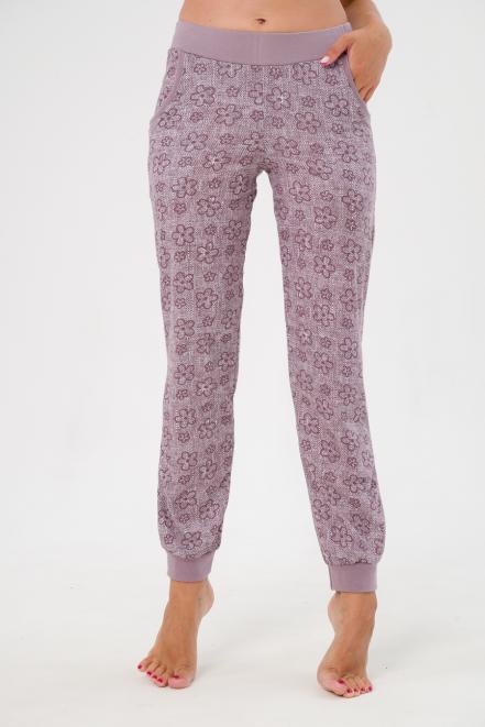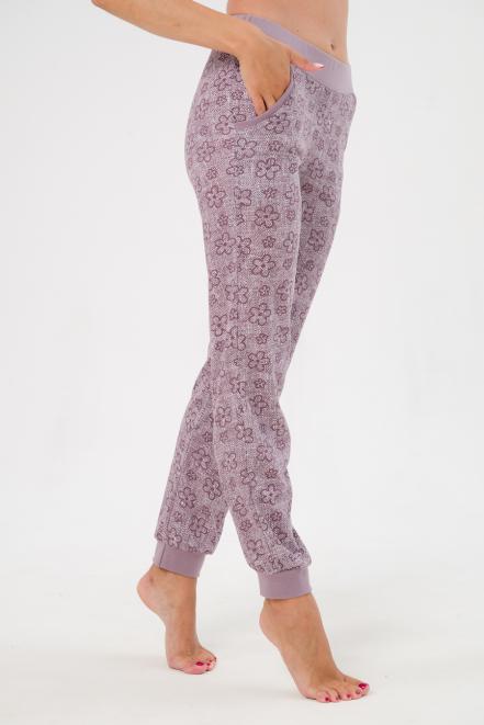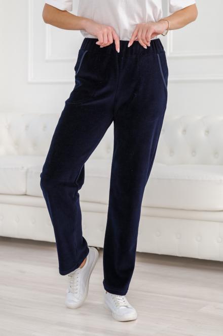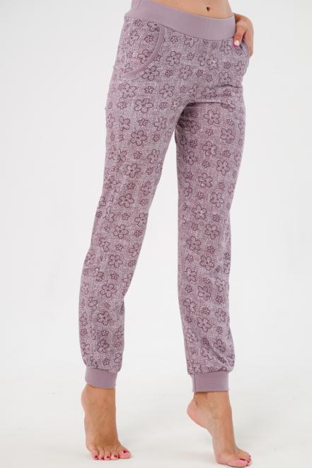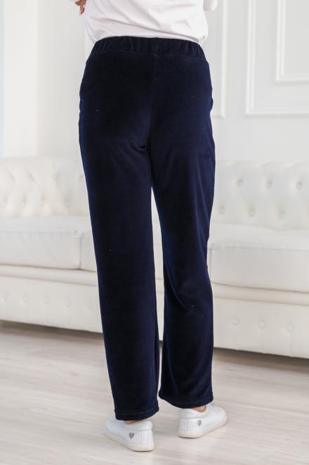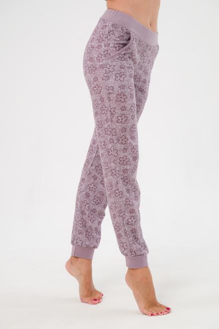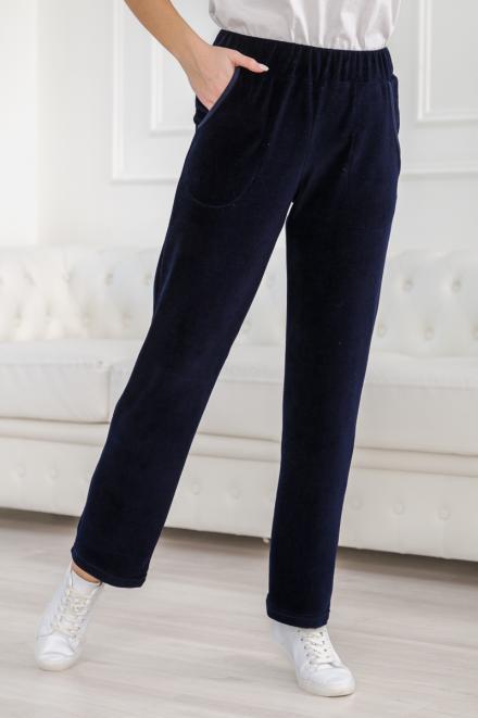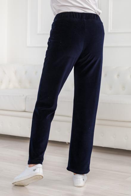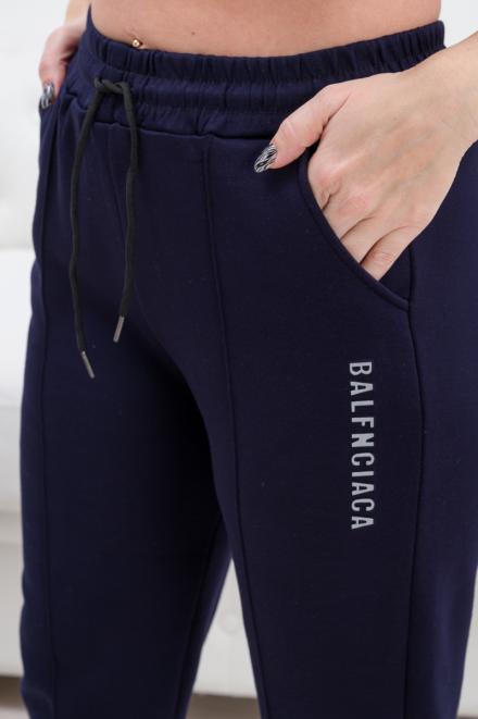 Брюки женские домашние из футера на манжете розы на темно-синем