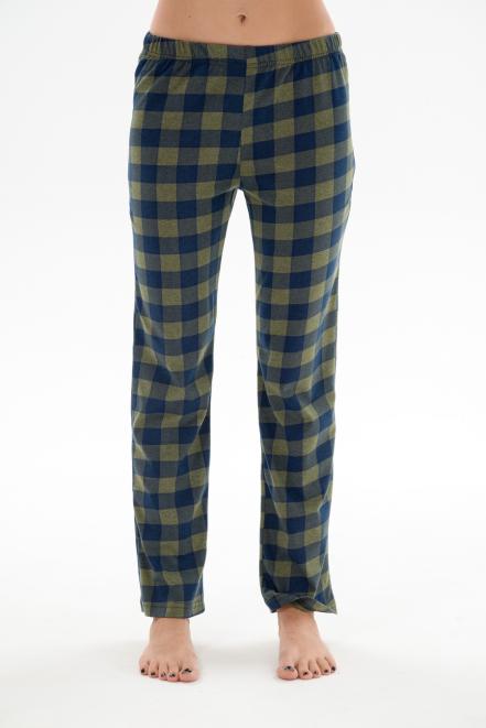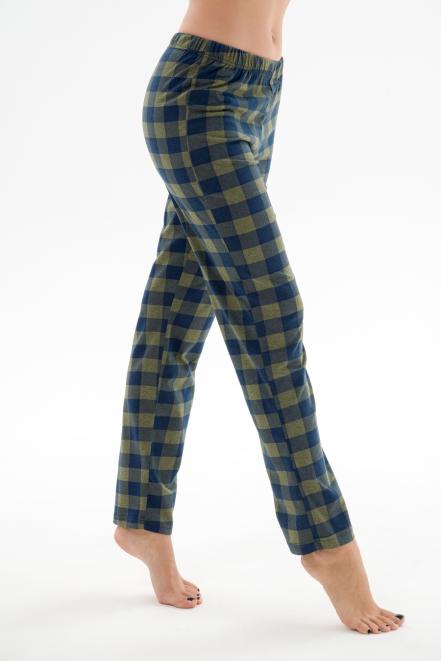 Брюки женские домашние из кулирки Барокко зеленая клетка