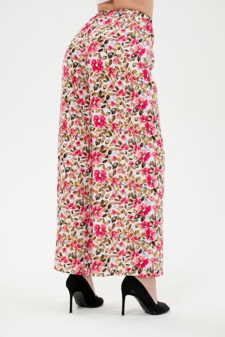 Брюки палаццо из штапеля Диана цветы на белом макс