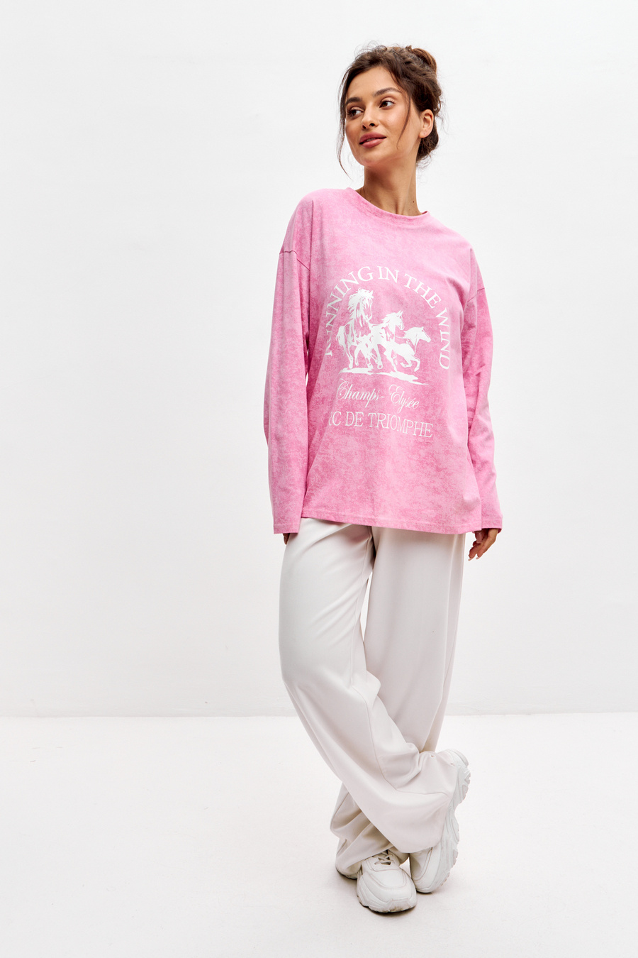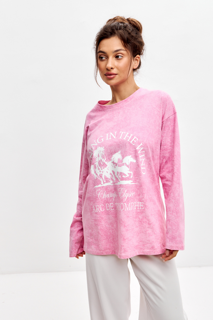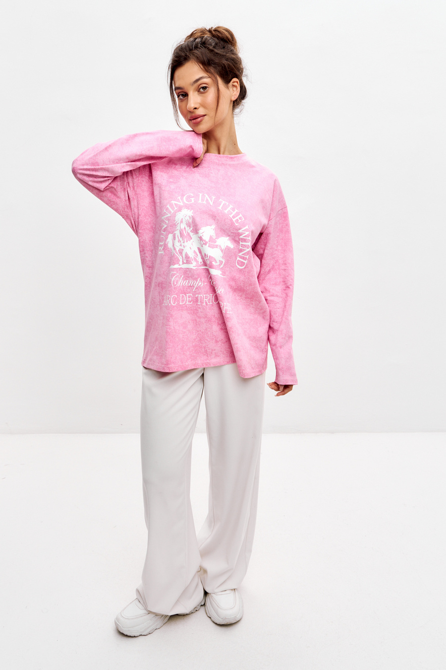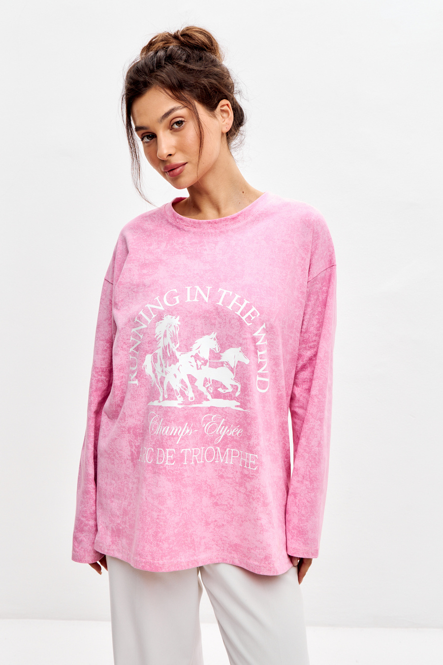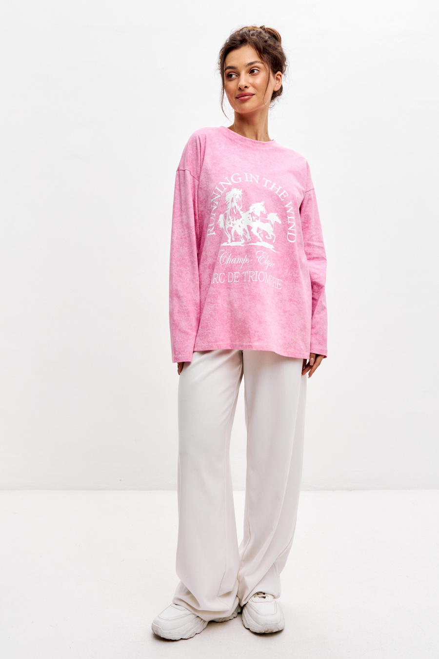 • Лонгслив женский из кулирки оверсайз розовый макси