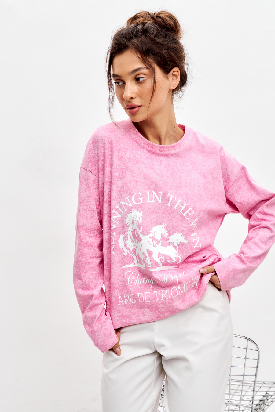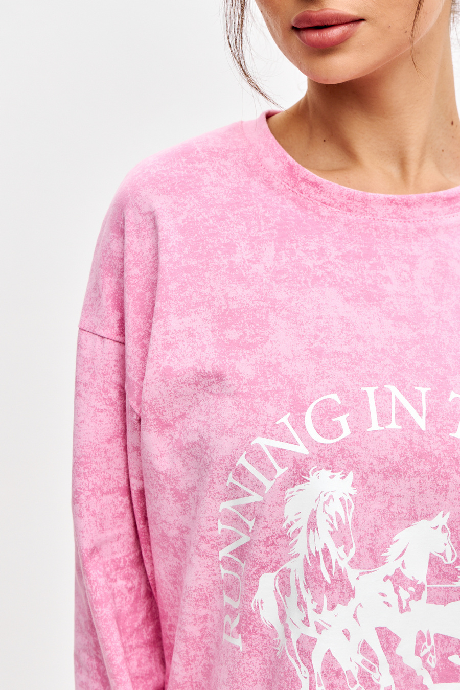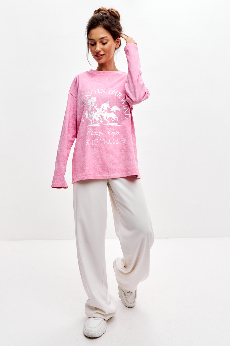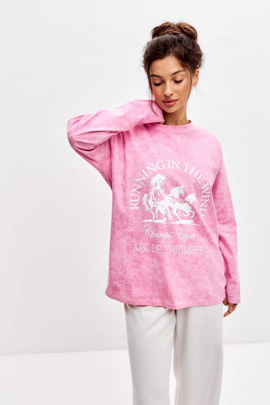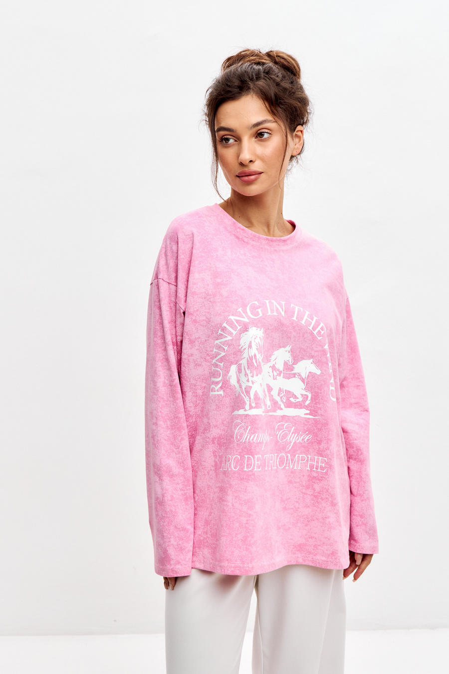 • Лонгслив женский из кулирки оверсайз розовый макси