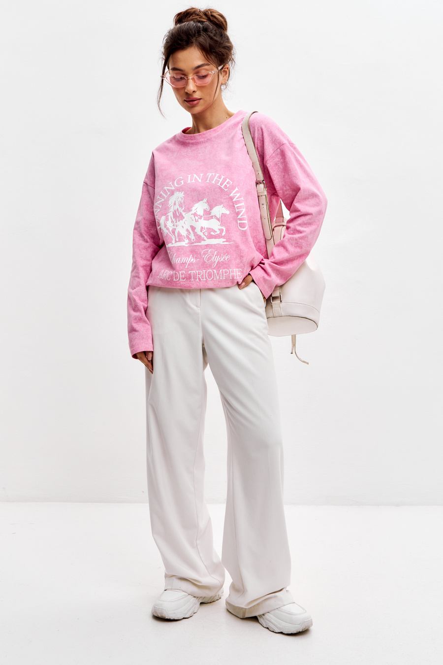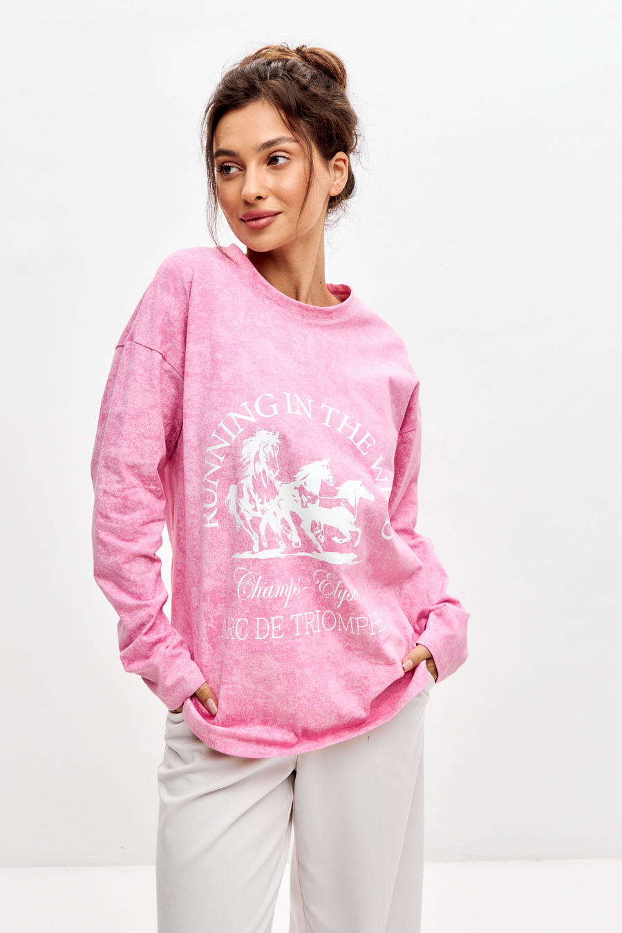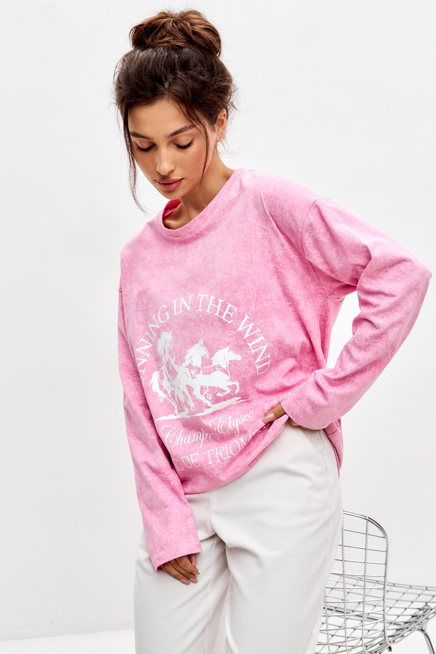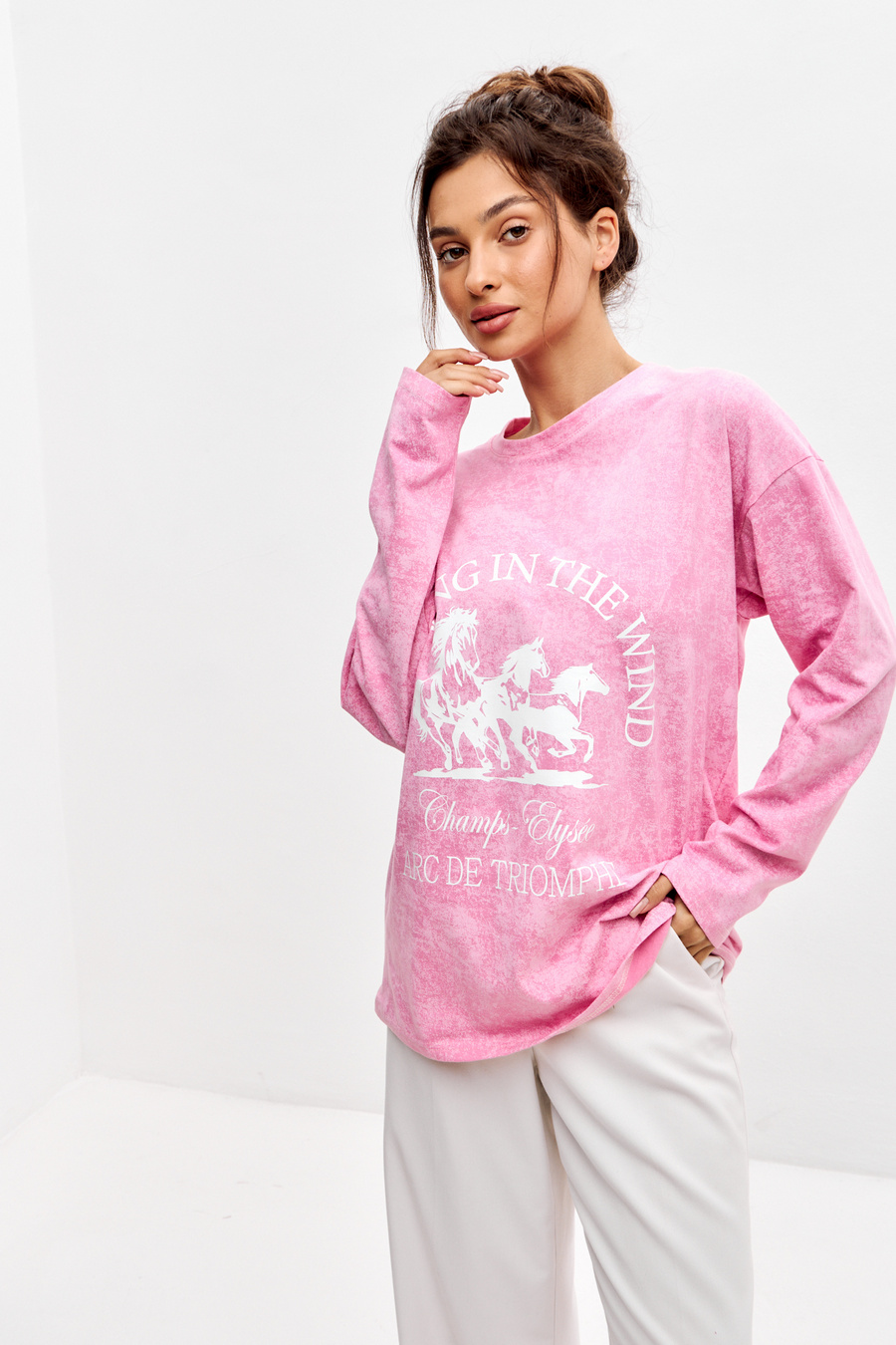 • Лонгслив женский из кулирки оверсайз розовый макси