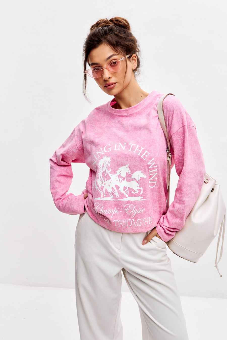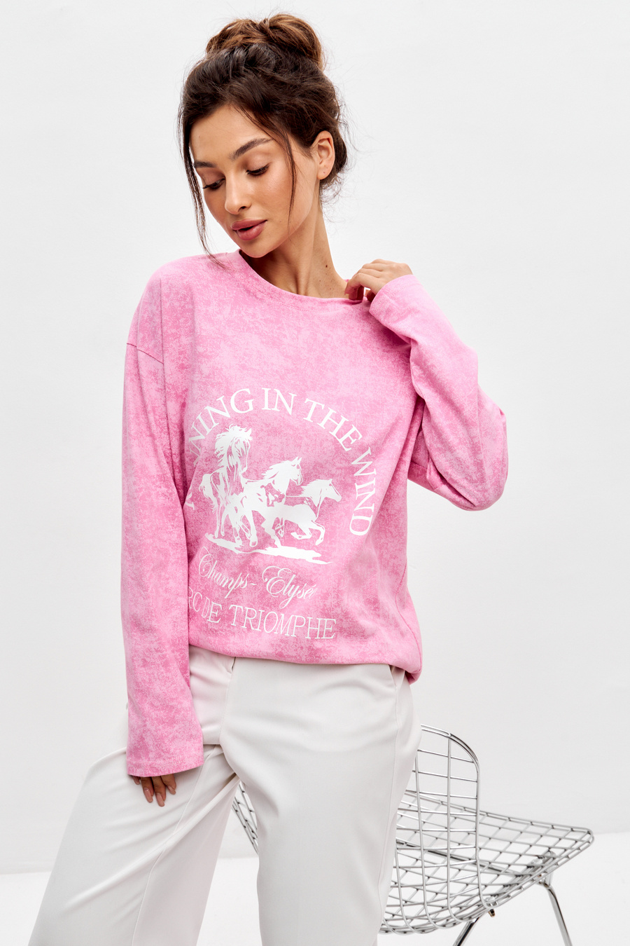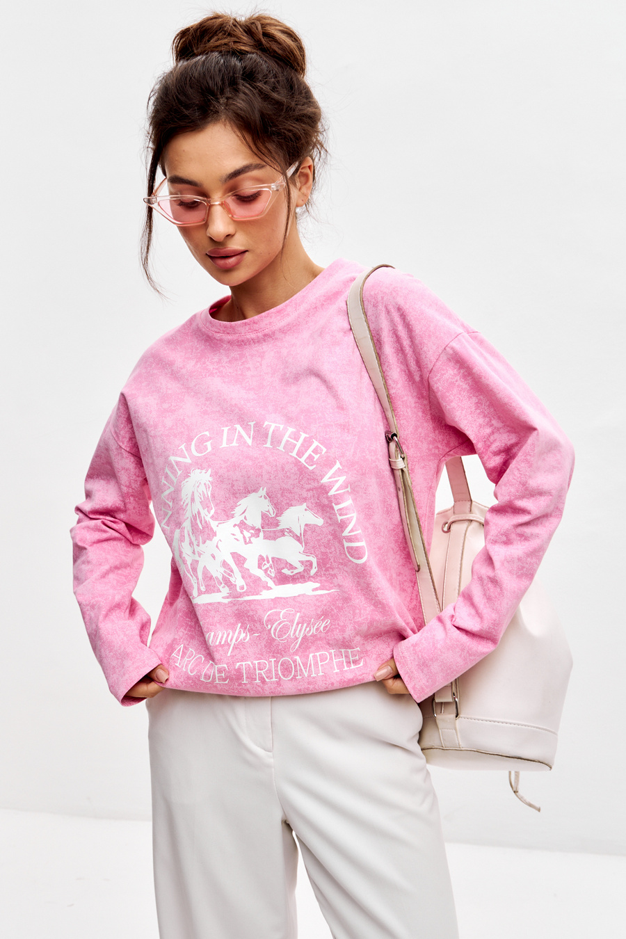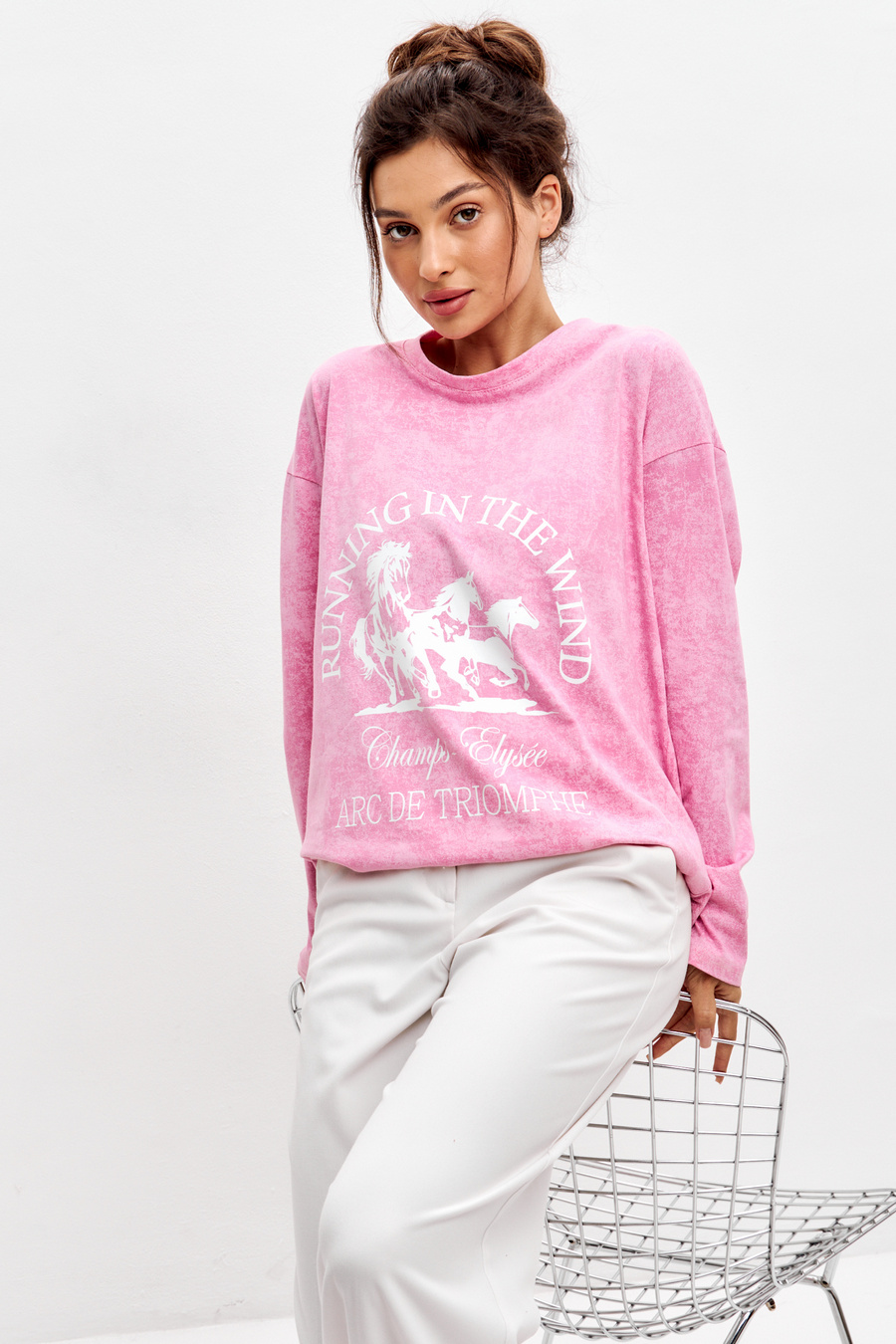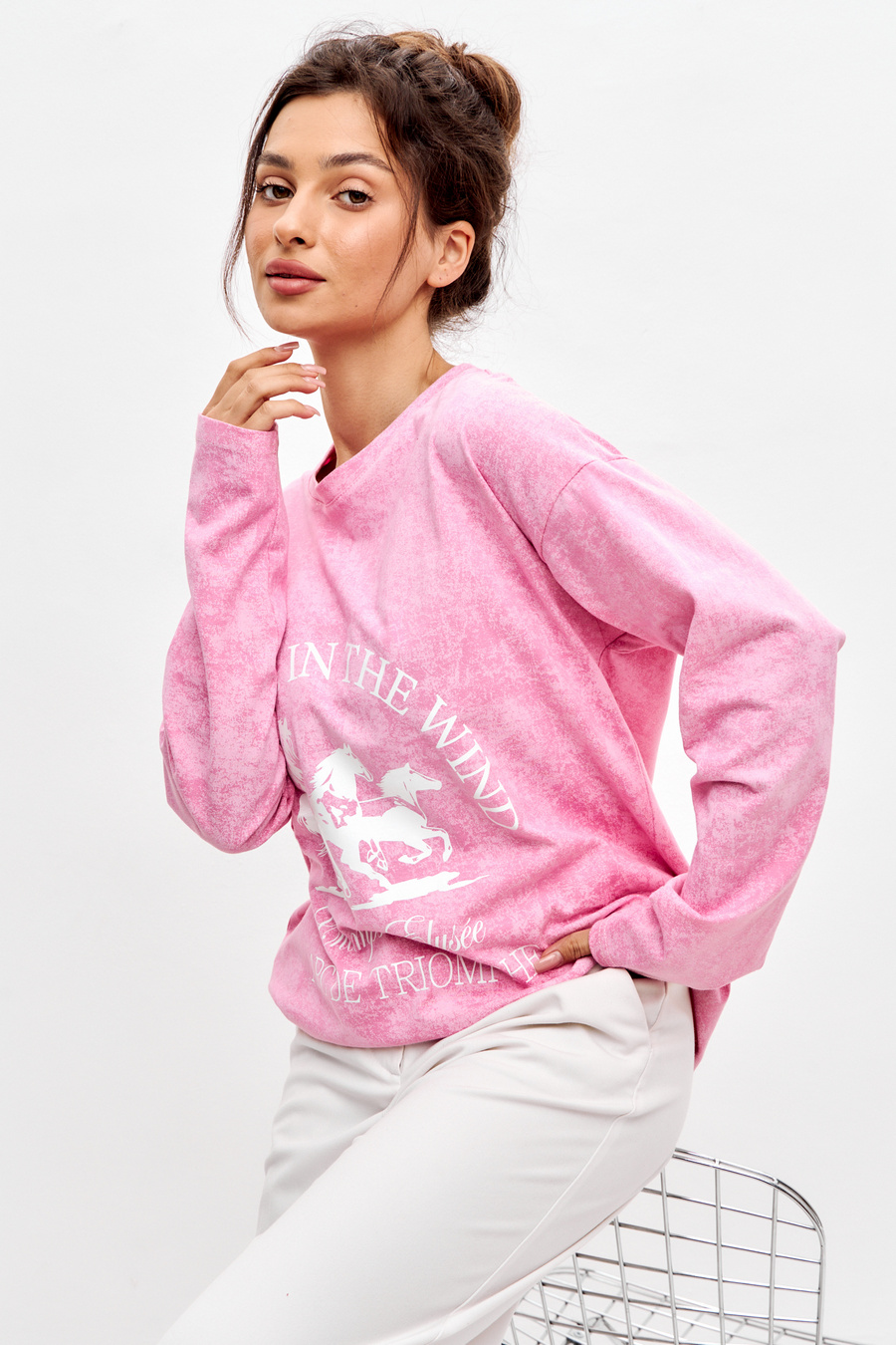 • Лонгслив женский из кулирки оверсайз розовый макси