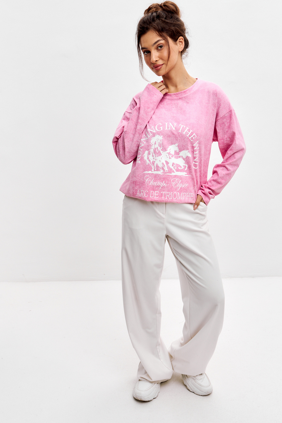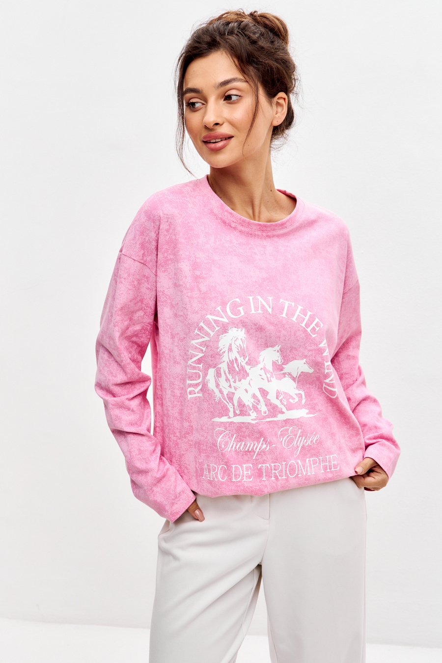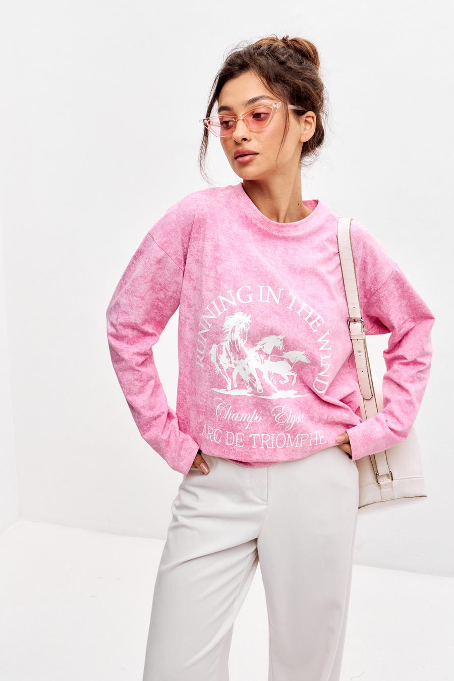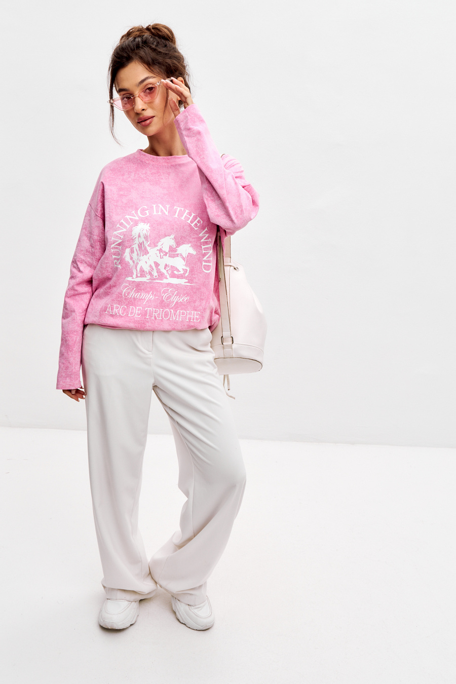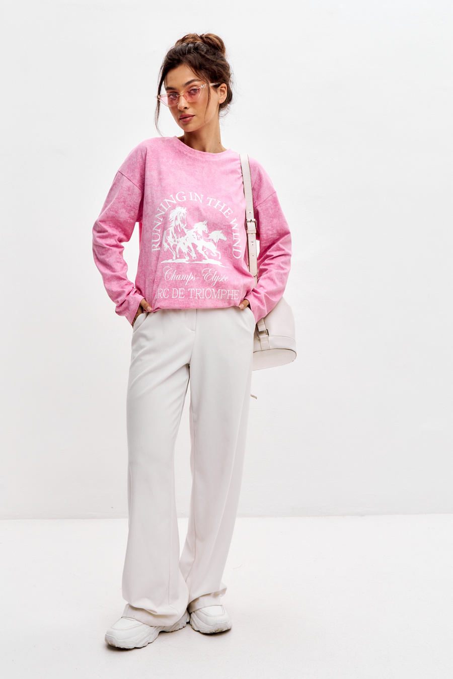• Лонгслив женский из кулирки оверсайз розовый макси