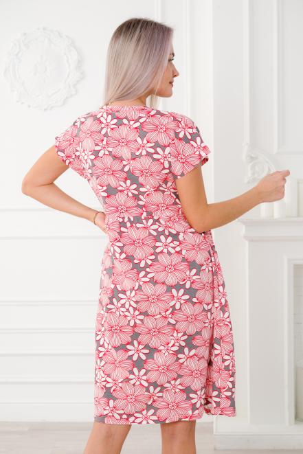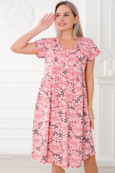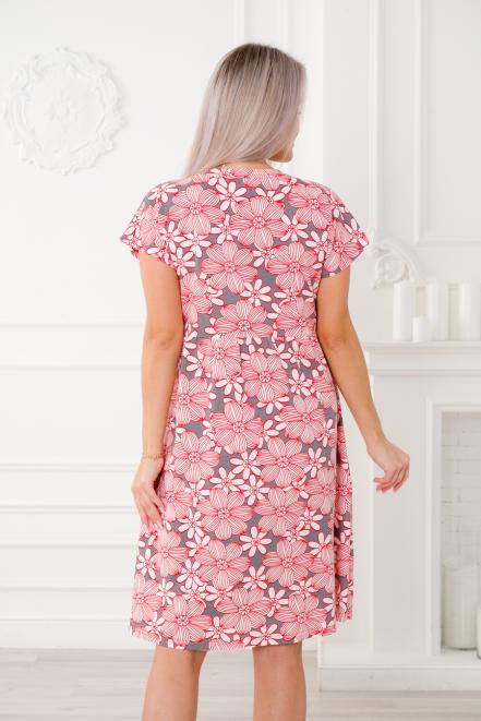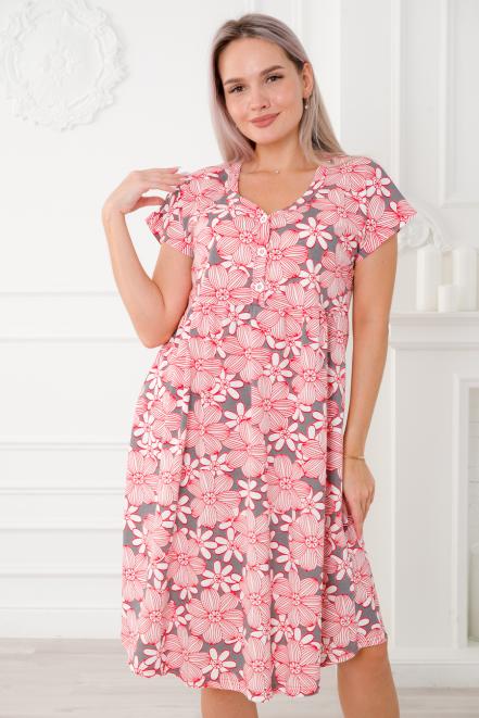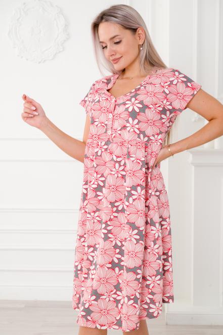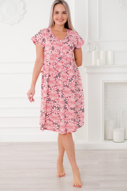 Ночная сорочка из кулирки Долорес ромашки на сером красные