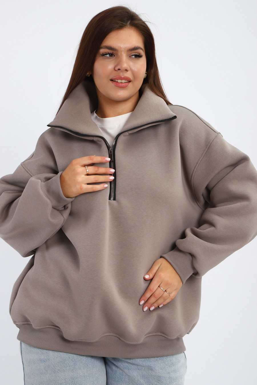 Купить Толстовка женская из футера начес Комфорт серо-коричневый макси арт. 07901/1 оптом в интернет-магазине Амадель. Купить Толстовка женская из футера начес Комфорт серо-коричневый макси арт. 07901/1 оптом от производителя можно недорого в интернет-магазине Амадель37. Заказывайте с доставкой 🚚 по России и СНГ! 📞 Звоните: 8(800)5000-933. ⭐⭐⭐⭐⭐