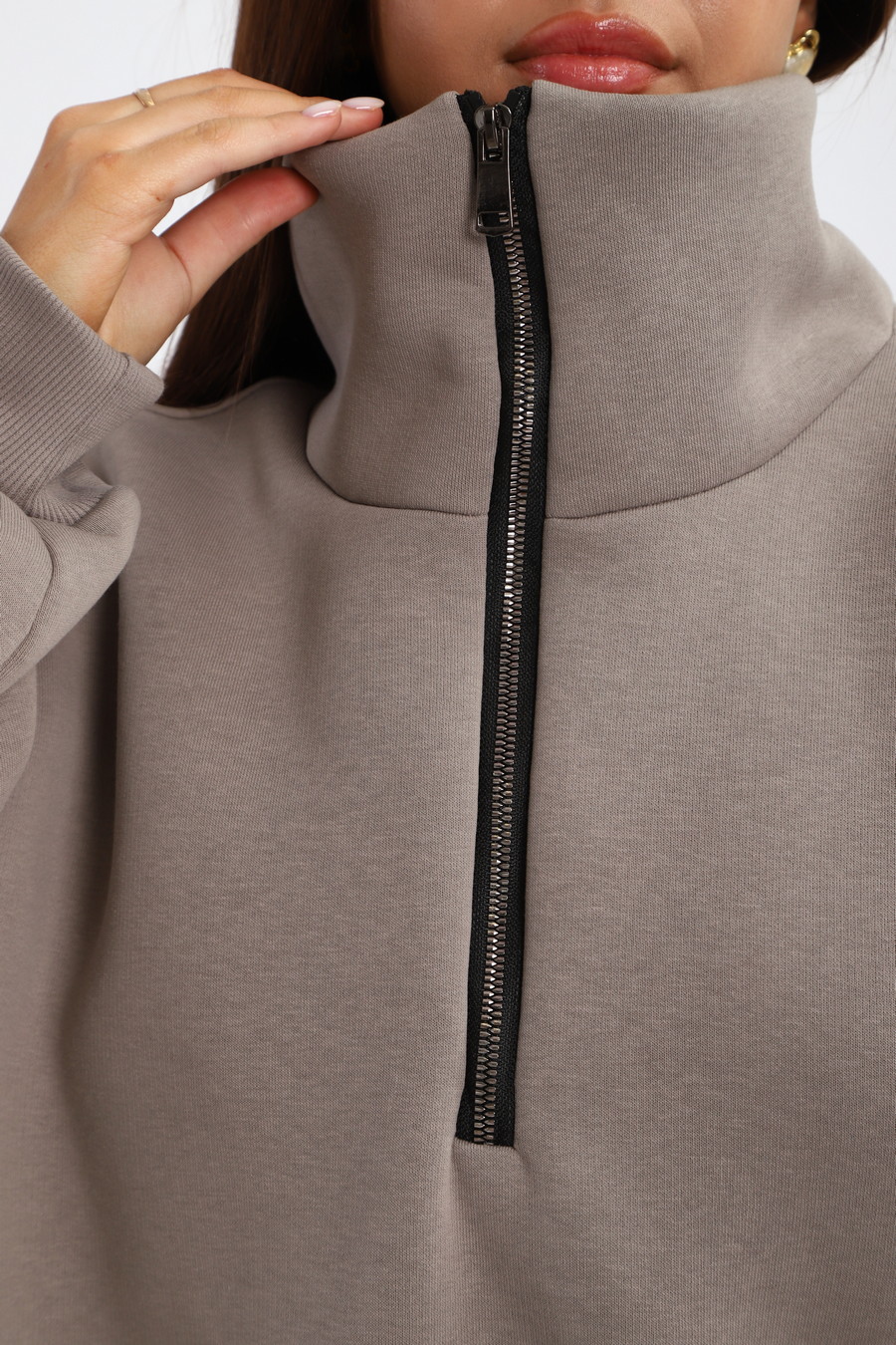 Толстовка женская из футера начес Комфорт серо-коричневый макси