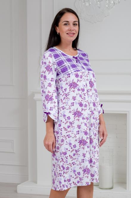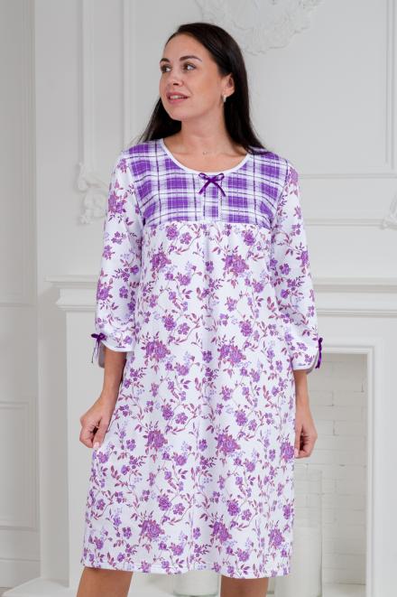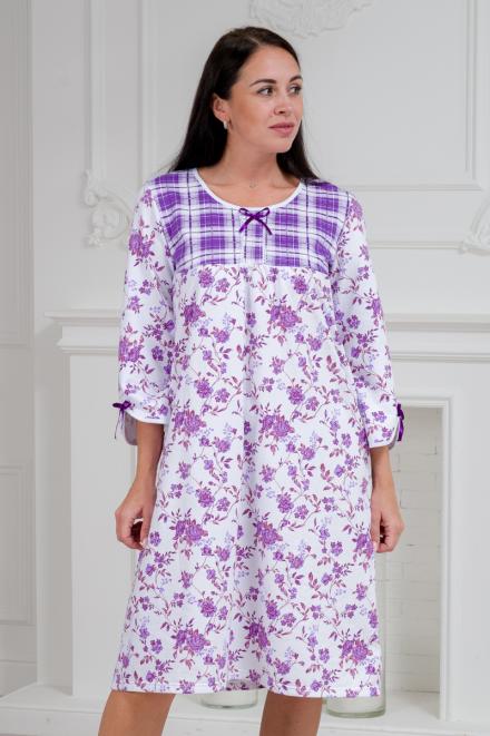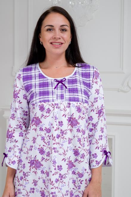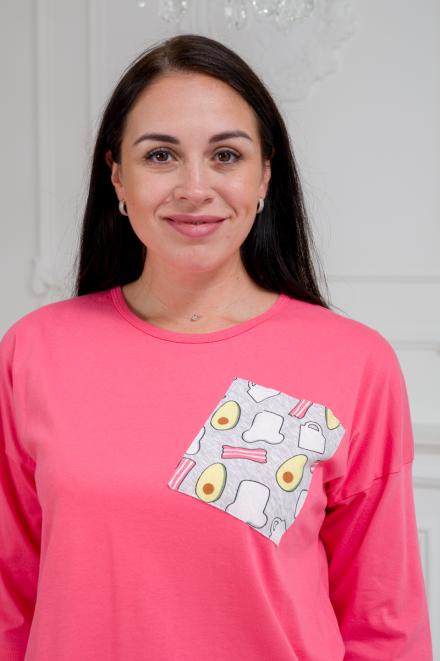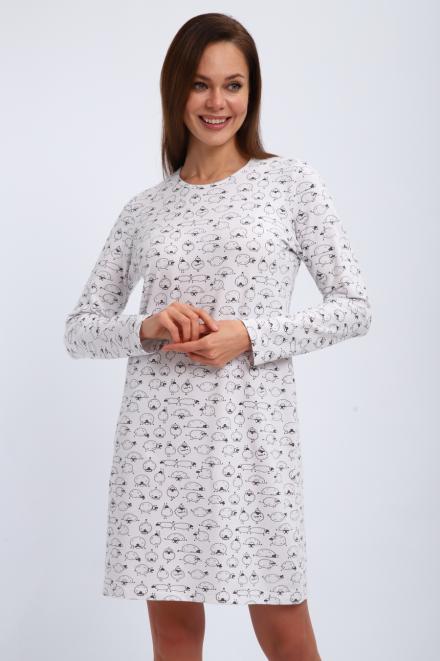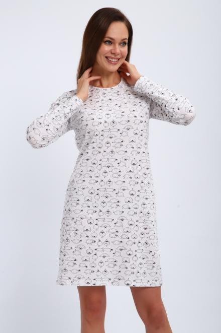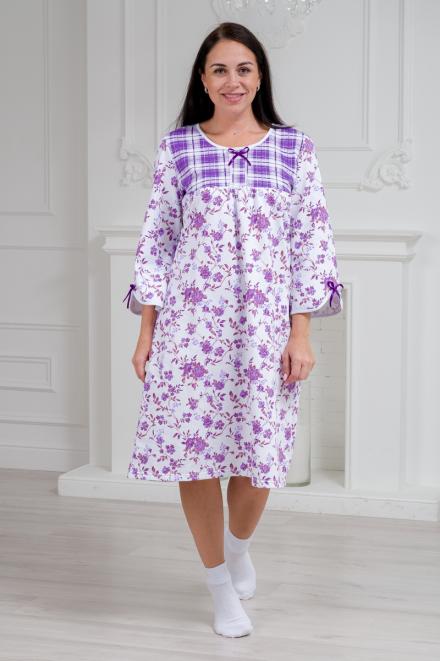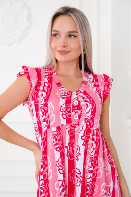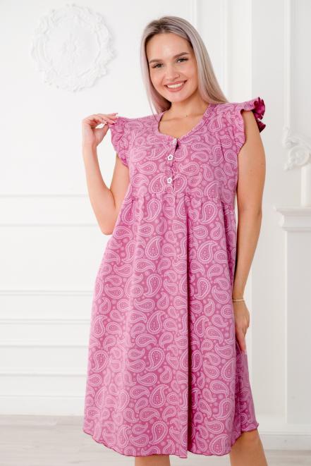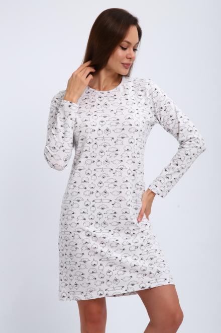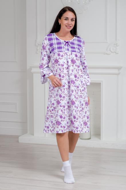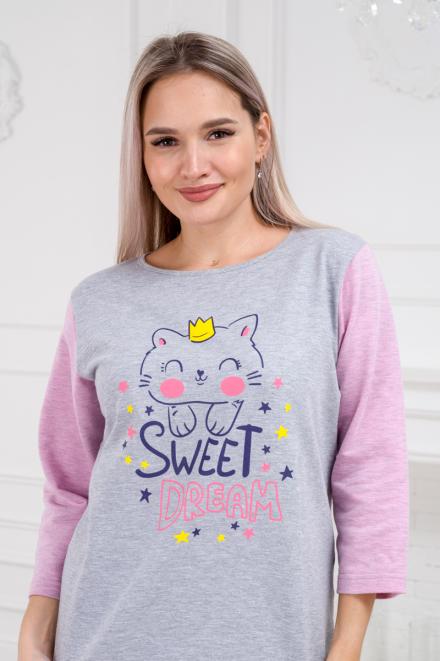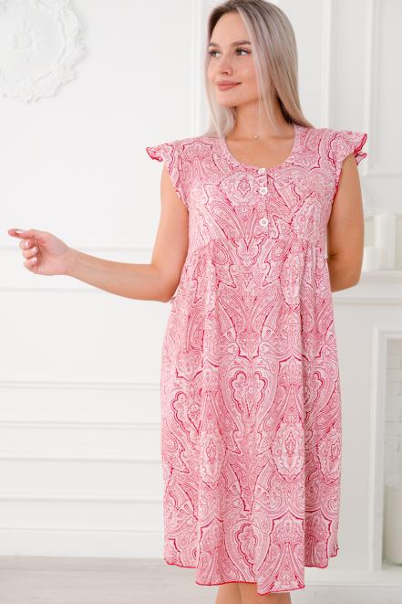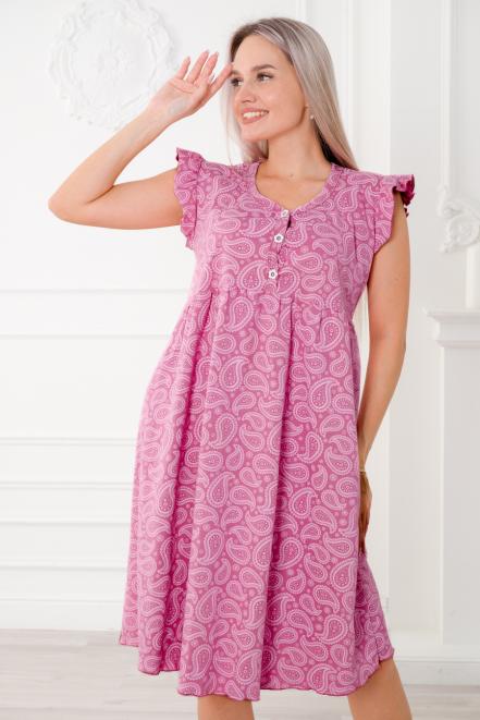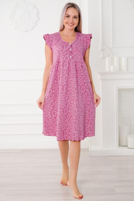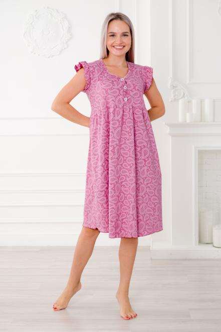 Ночная сорочка из интерлока длинный рукав Соня розовый