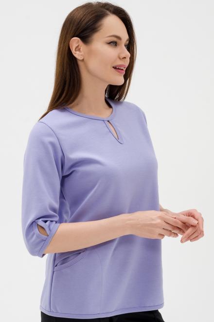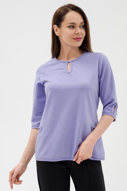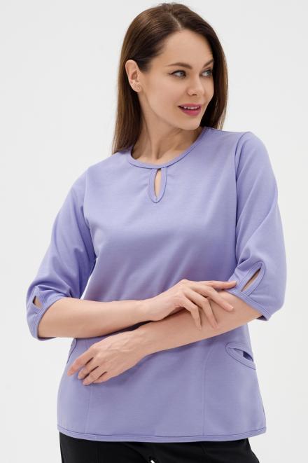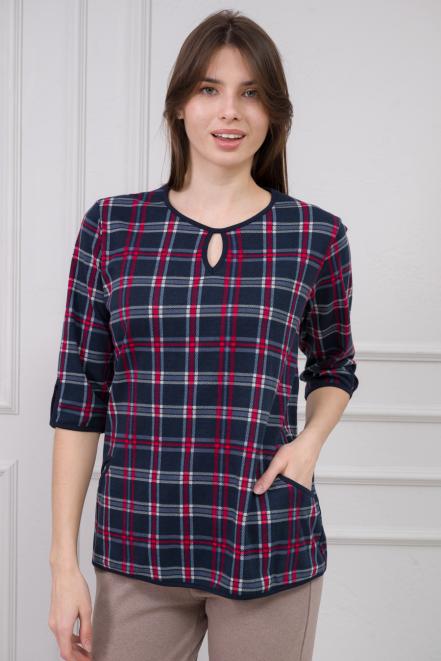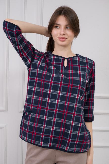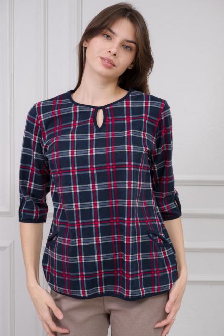 Блуза женская из кулирки Матильда горошек на тёмно-синем