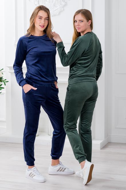 Брюки женские из футера трехнитка с начесом Сова изумруд