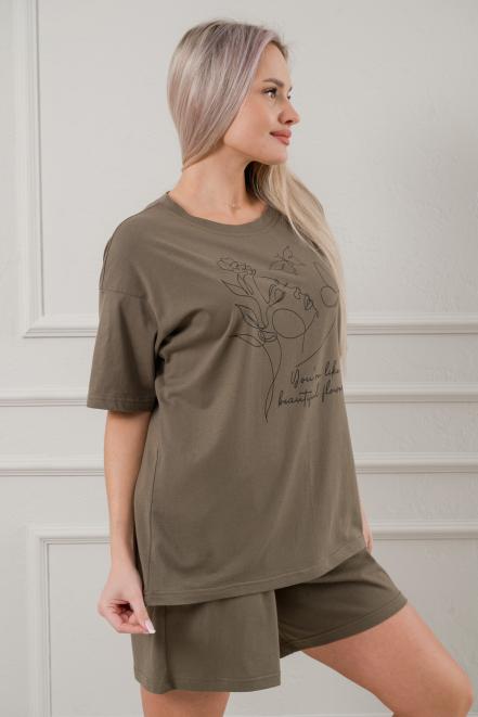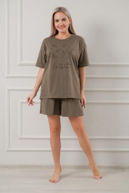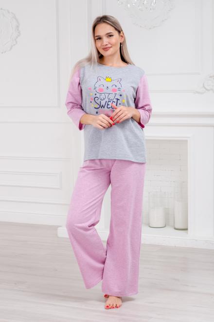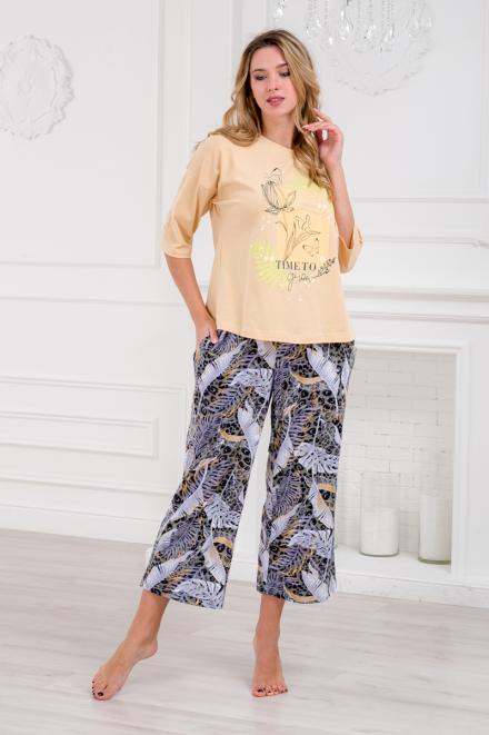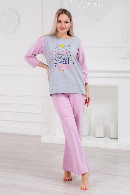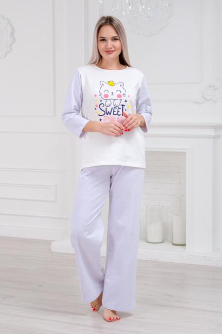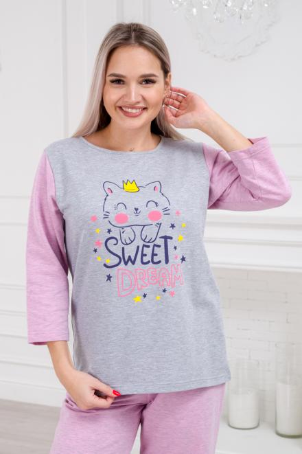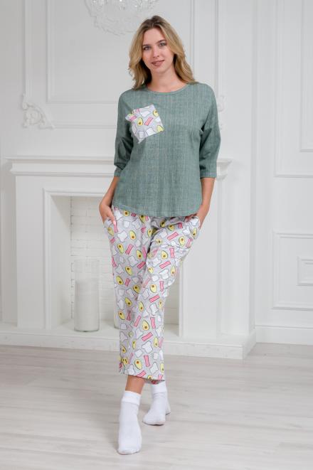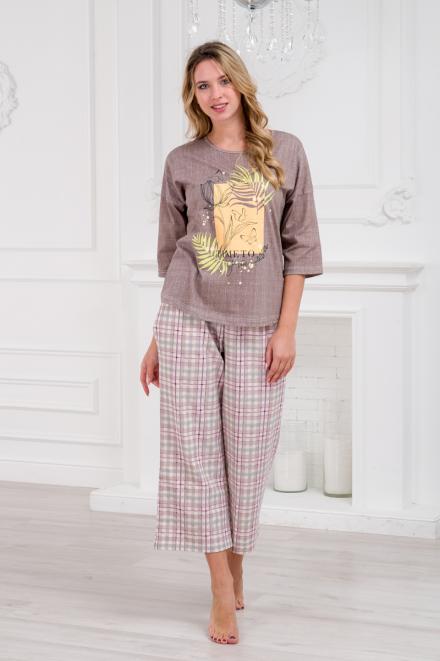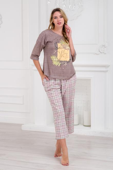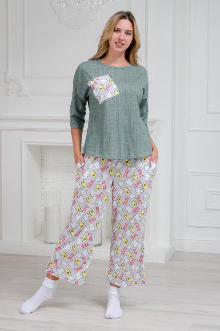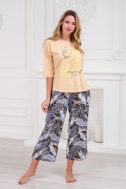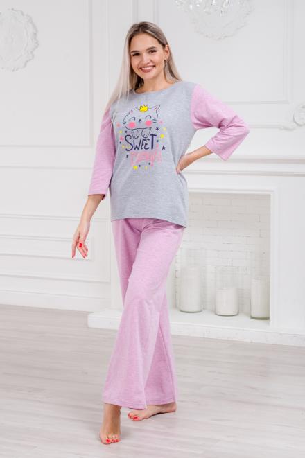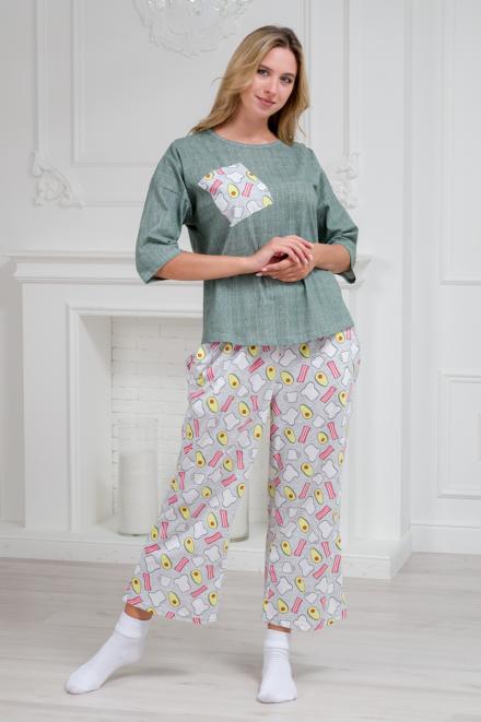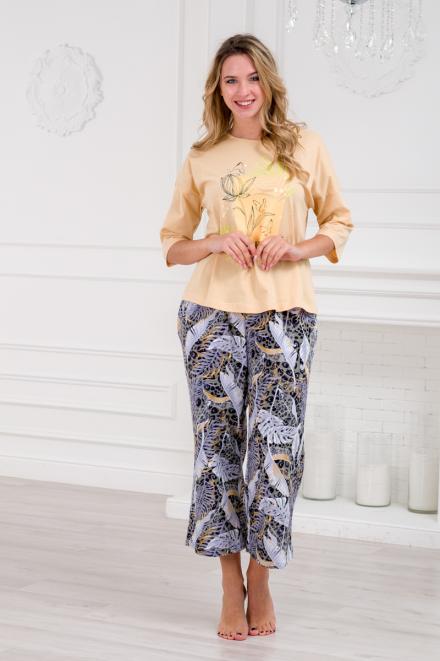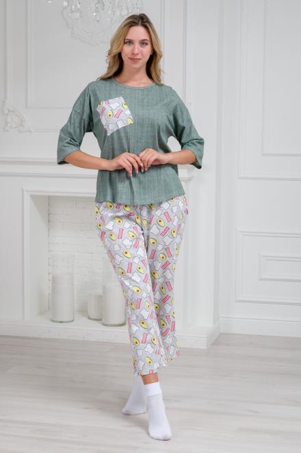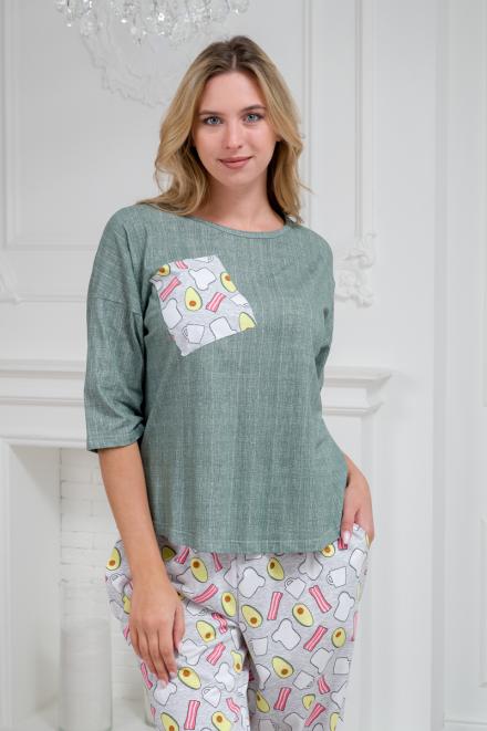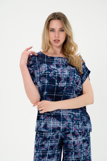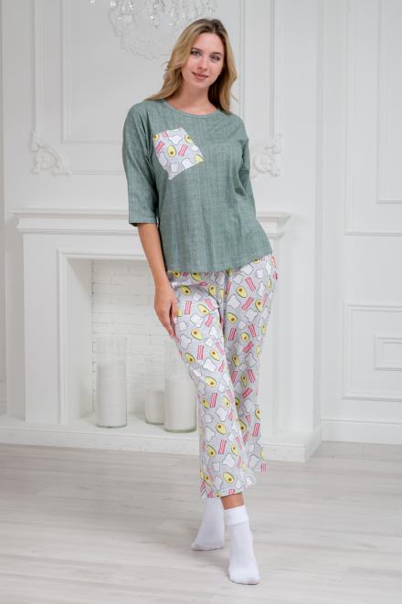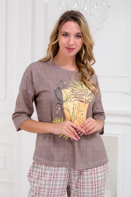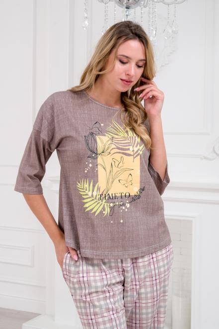Пижама женская из бридж и футболки из интерлока Королева индиго меланж