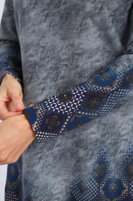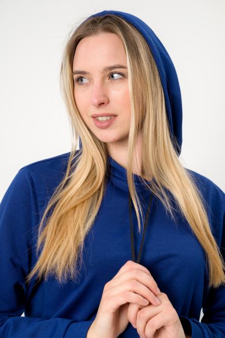 Блуза женская из кулирки Матильда горошек на тёмно-синем макси