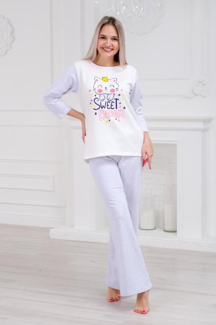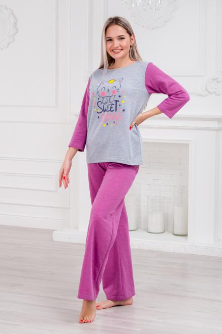 Пижама и халат в той же или контрастной цветовой гамме – идеальный домашний образ для выходного, когда не нужно никуда торопиться! А для тех, кто не любит многослойность, можно подобрать женский костюм из свободных брюк и не сковывающей движения футболки или джемпера. В каталоге Амадэль есть легкий трикотаж на весну-лето и утепленные модели на осень или зиму, чтобы нашим покупателям было уютно круглый год.
