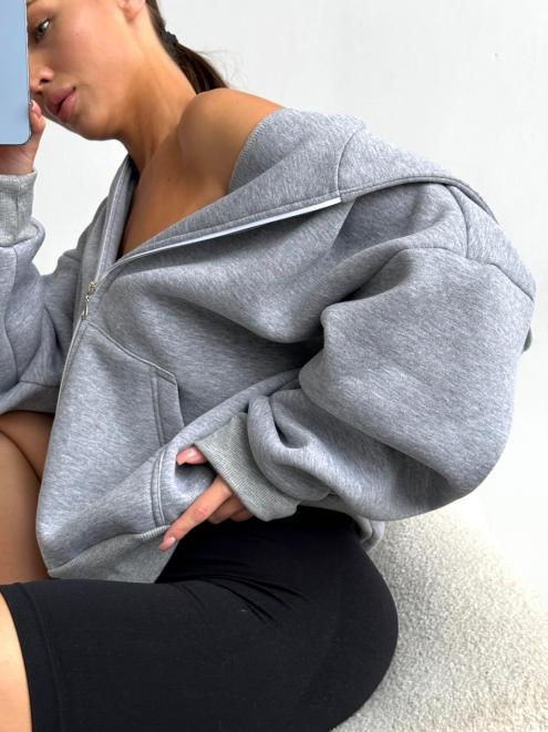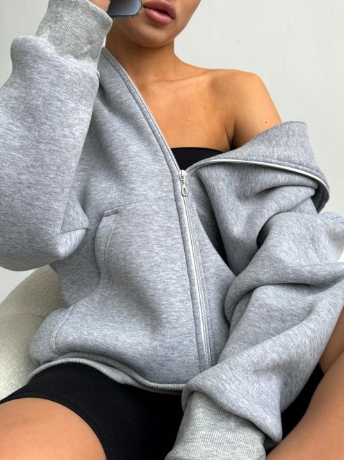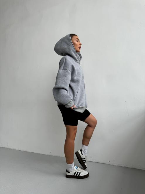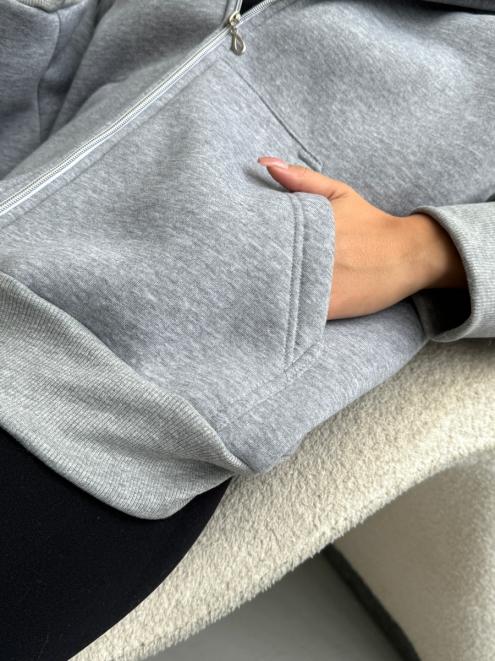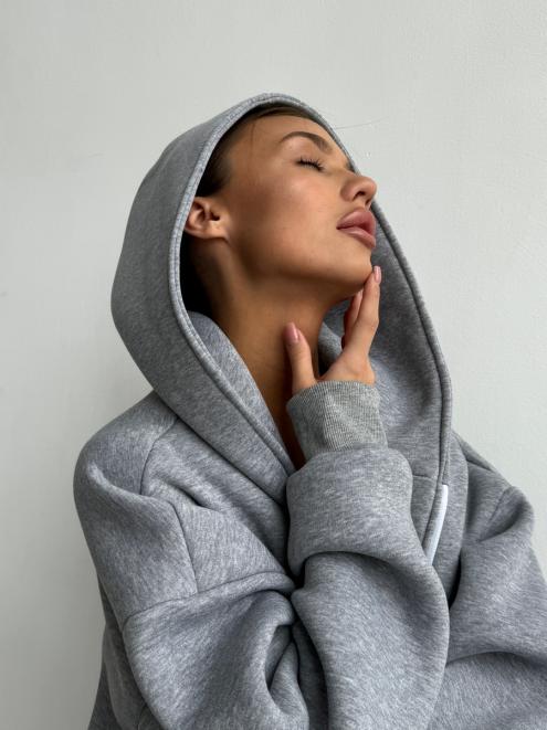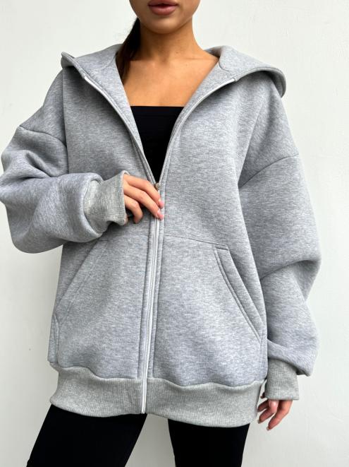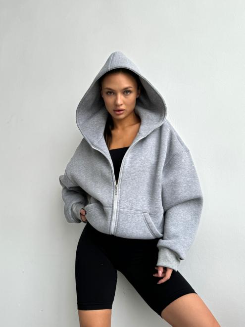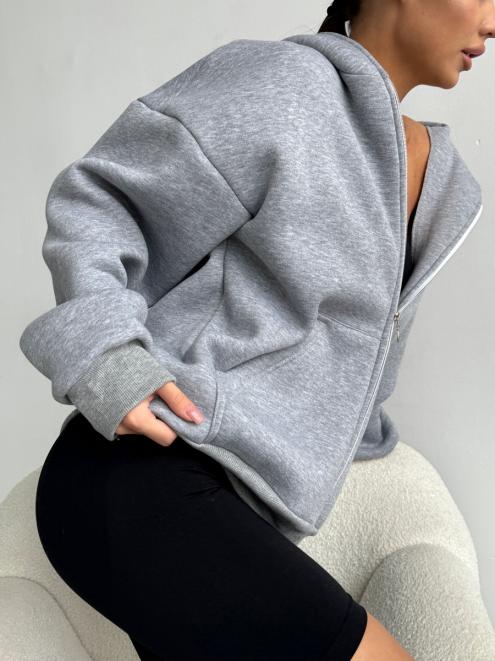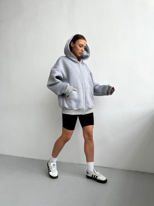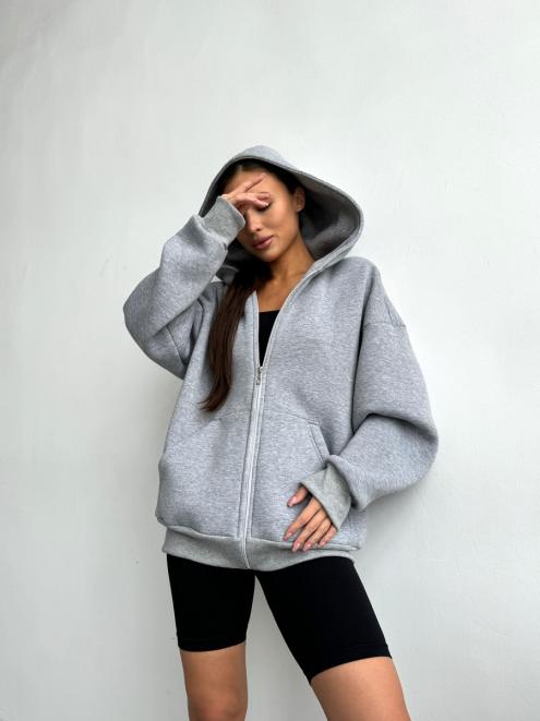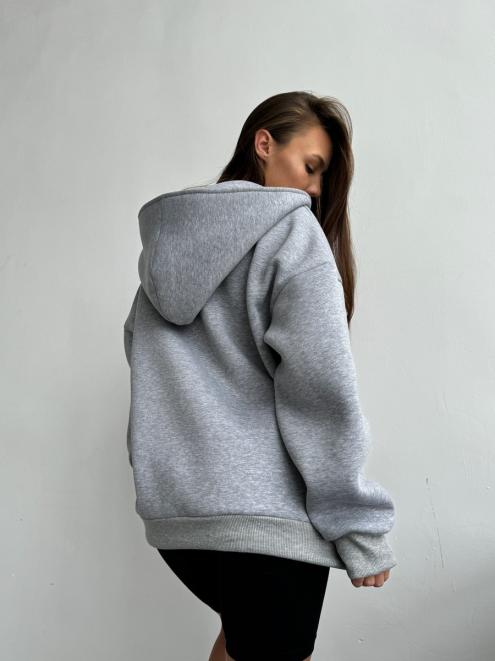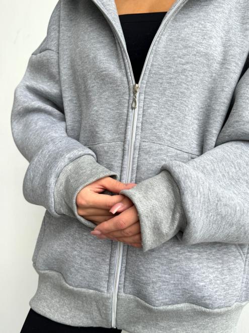 Толстовка на молнии из футера 3х нит.начес Сова серый меланж макси