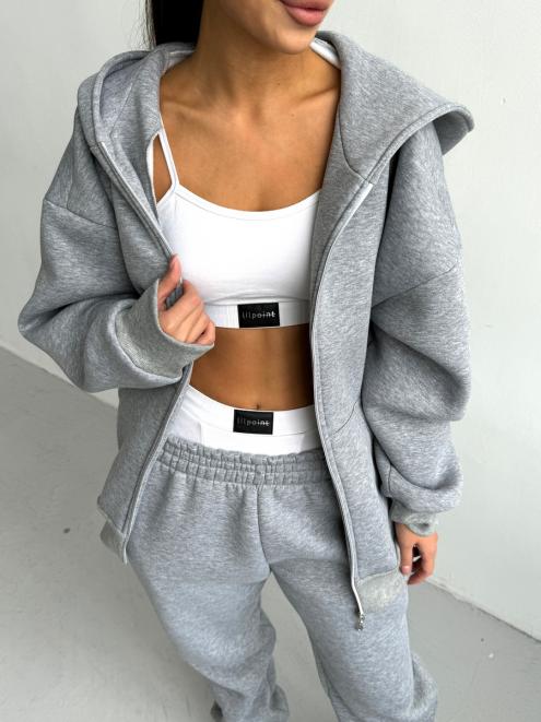 Брюки женские из футера трехнитка с начесом Сова серый меланж