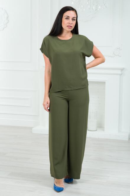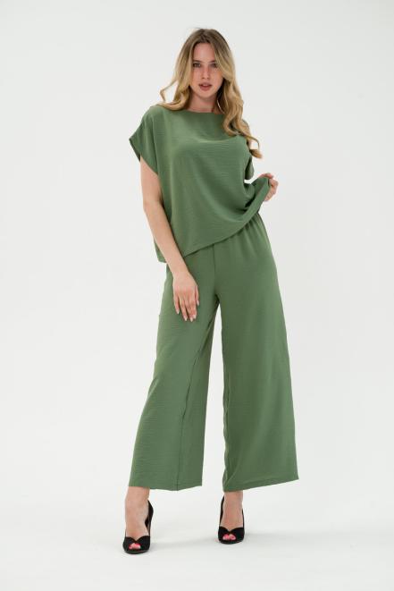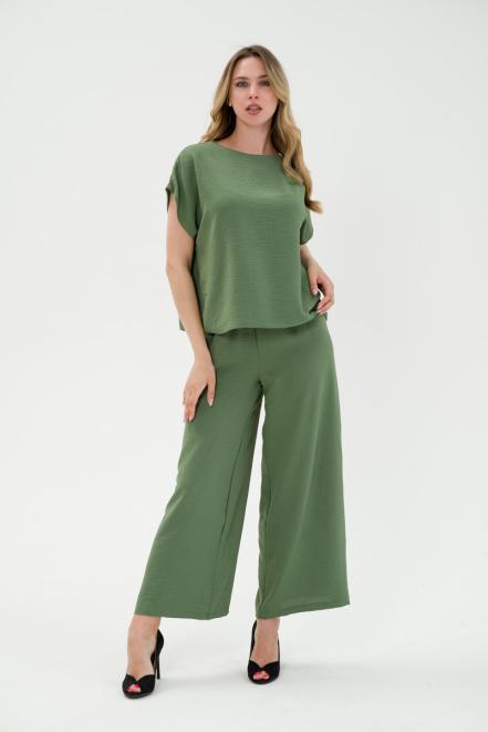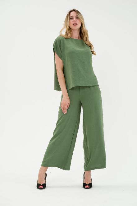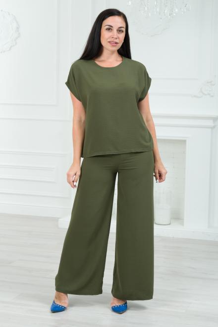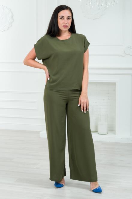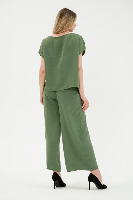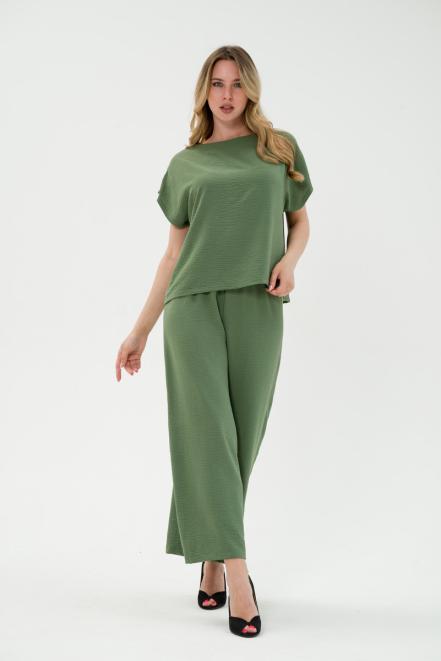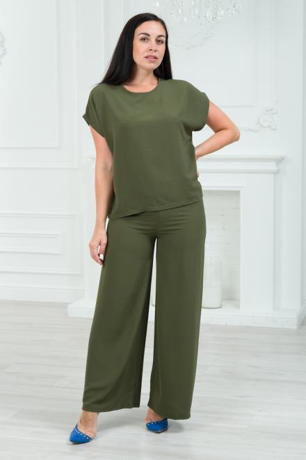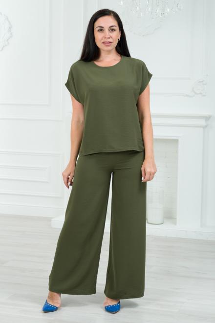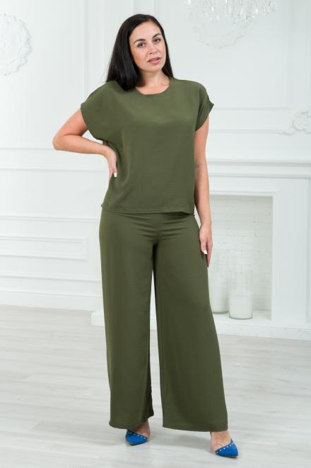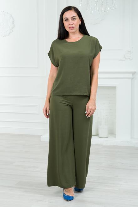 Костюм женский из туники и брюк палаццо из жатки Диана хаки