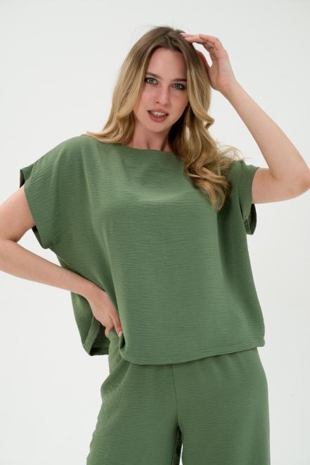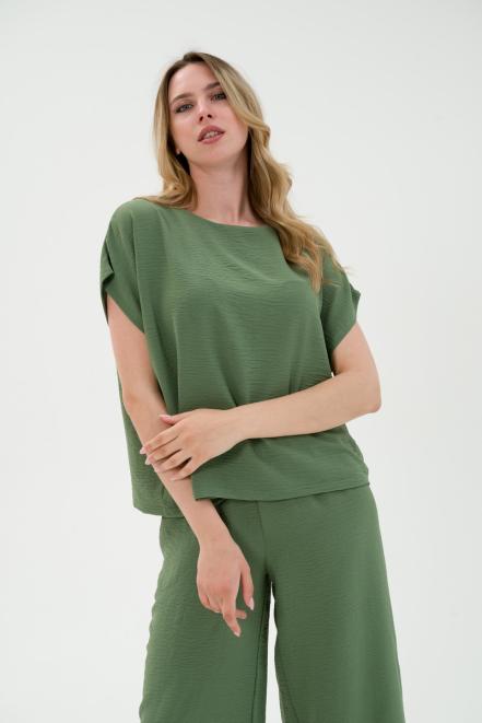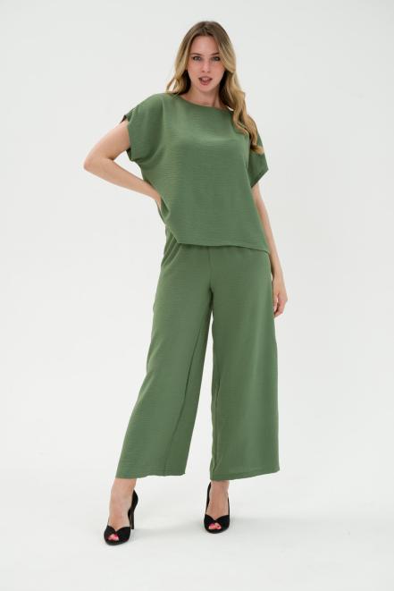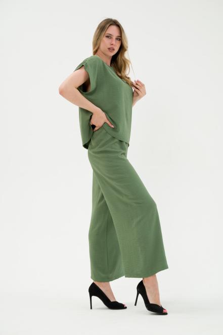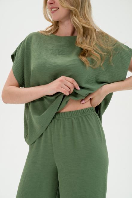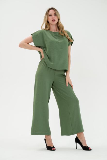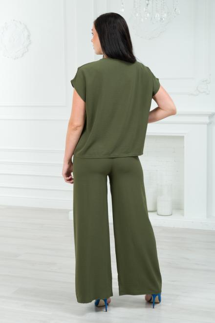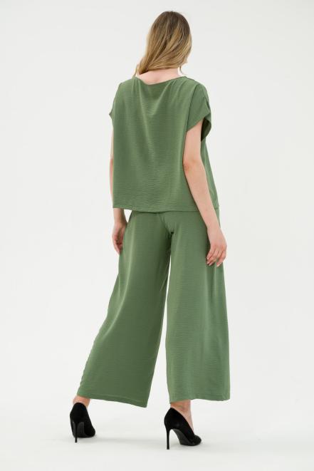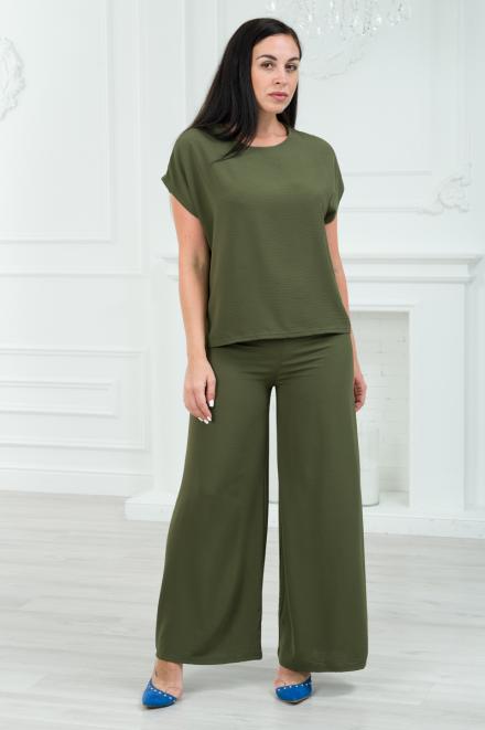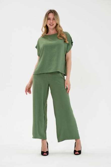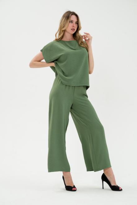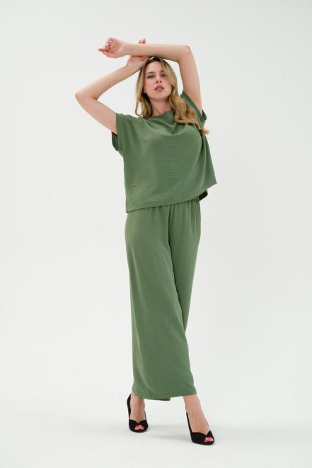 Костюм женский из туники и брюк палаццо из жатки Диана хаки