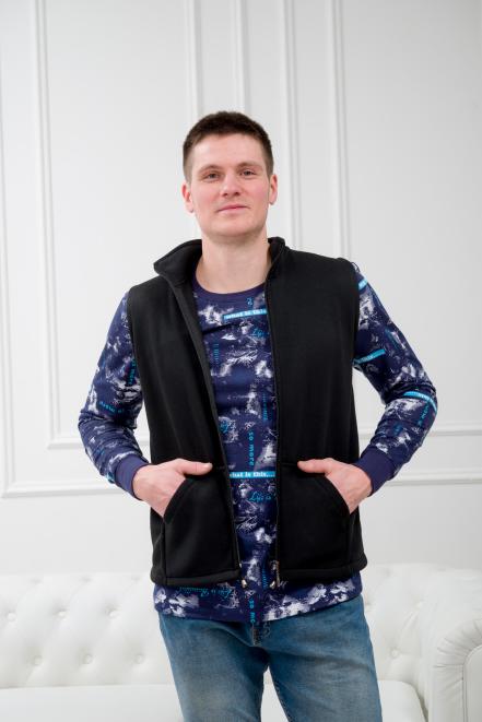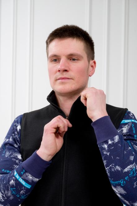 Наши жилеты мы шьем из плотного футера трехнитки – это плотный натуральный материал, гладкий снаружи и с теплым ворсом внутри. Он сохраняет форму после многочисленных стирок и устойчив к появлению катышков, поэтому мужские, женские и детские изделия из него носятся не один год. Так как это плотный трикотаж, одежда из него может идти не в размер. При пошиве мы ориентируемся на мужские размерные линейки в диапазоне 46-64, но при покупке стоит заглянуть в таблицу размеров и все проверить еще раз.