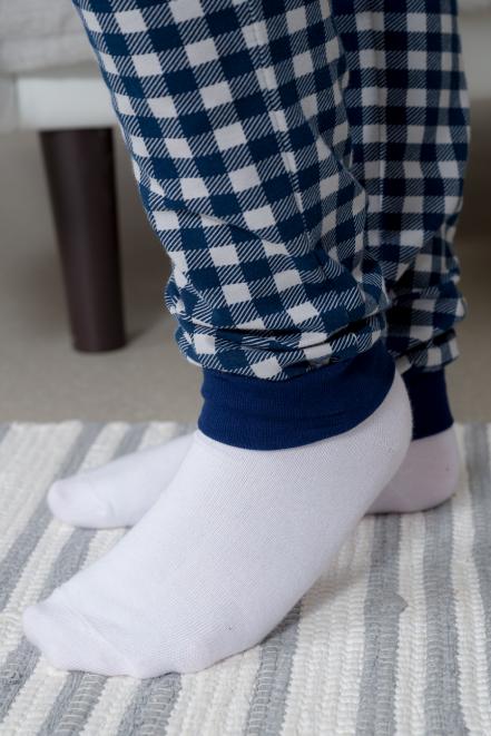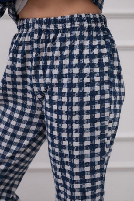 Пижама подростковая из кулирки пенье на манжетах Дрёма клетка синяя