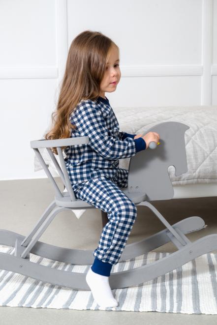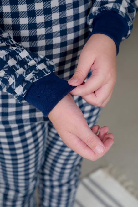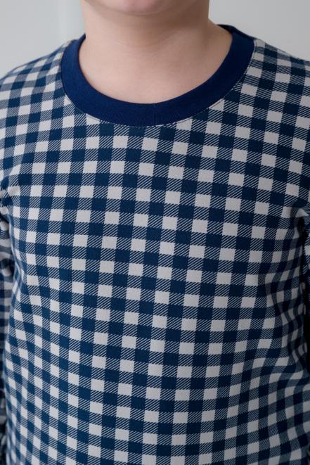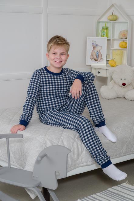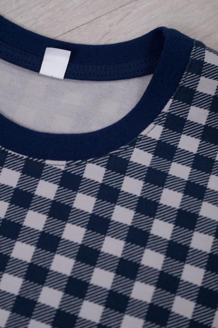 Пижама детская из кулирки пенье на манжетах Дрёма клетка синяя