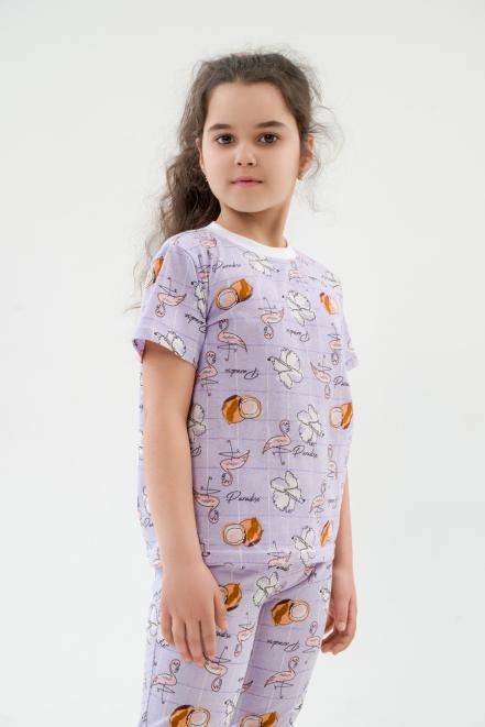 Пижама детская из футболки и брюк из кулирки Фламинго