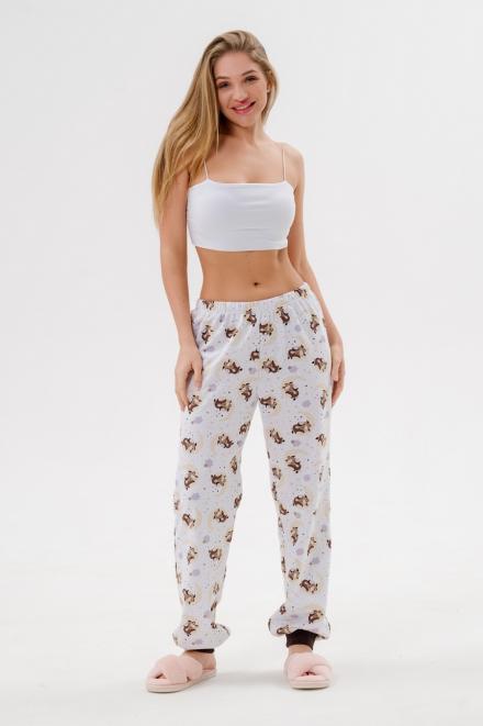 Брюки женские из футера трехнитка с начесом Сова серый меланж