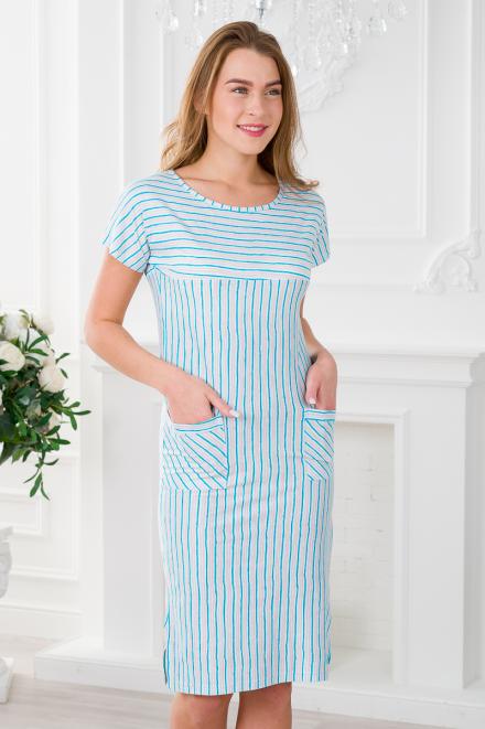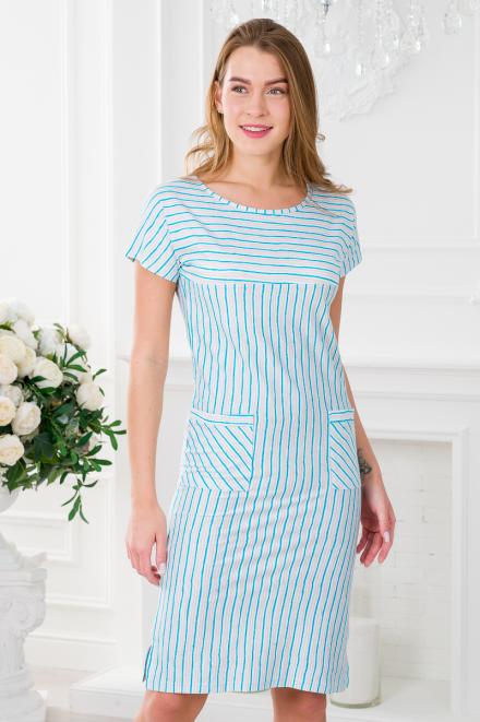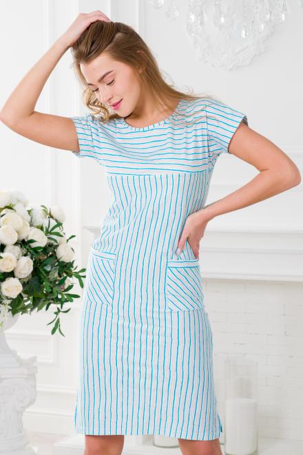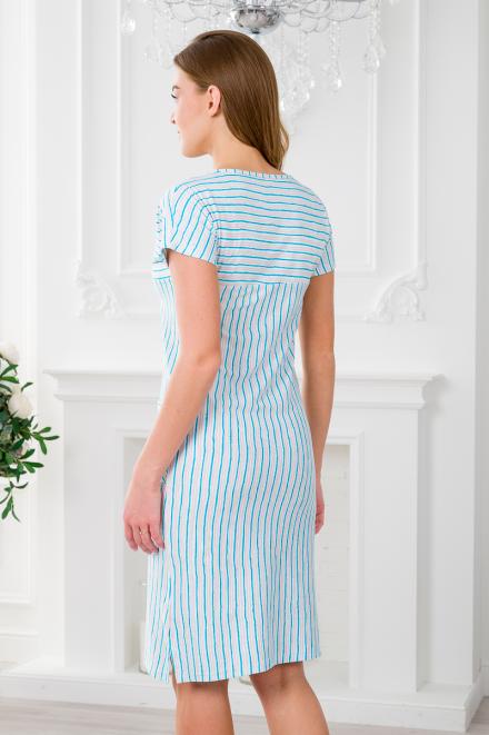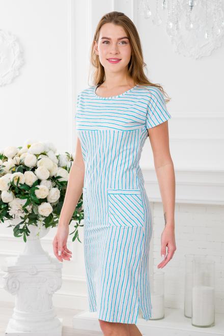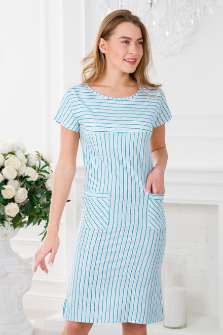 Платье женское домашнее из кулирки Лана голубая ромашка