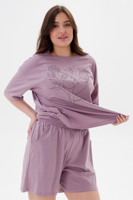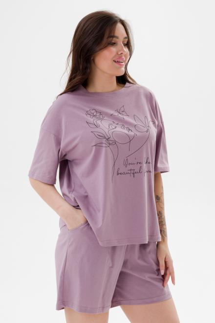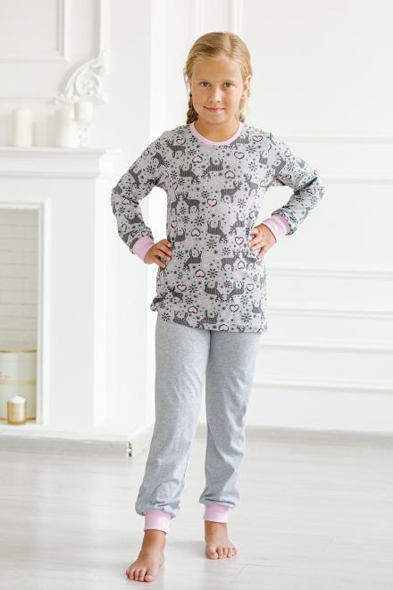 Пижама подростковая из джемпера и брюк из кулирки Олененок розовый