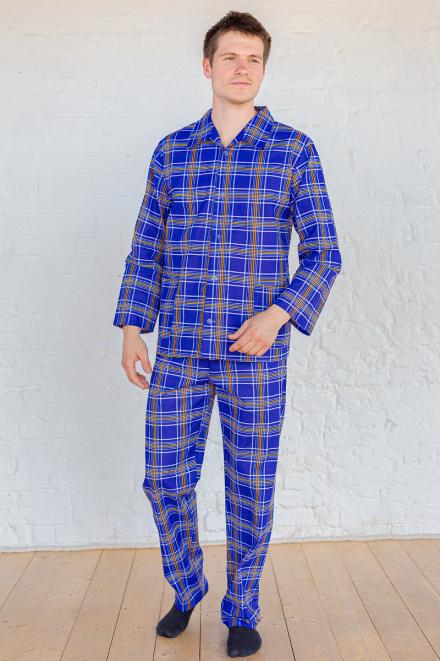 Пижама детская из кулирки пенье на манжетах Дрёма клетка синяя