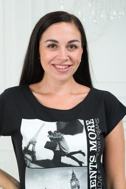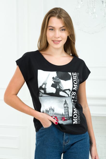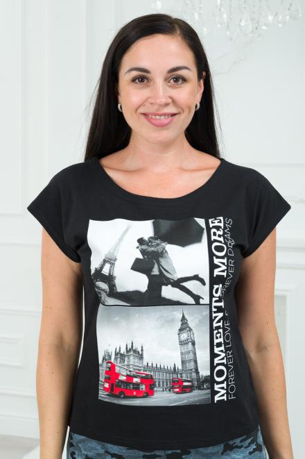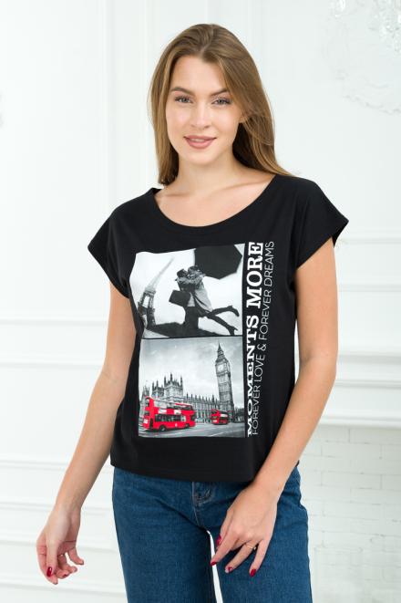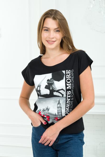 Футболка женская со спущенным плечом из кулирки Лира черный с принтом Moments