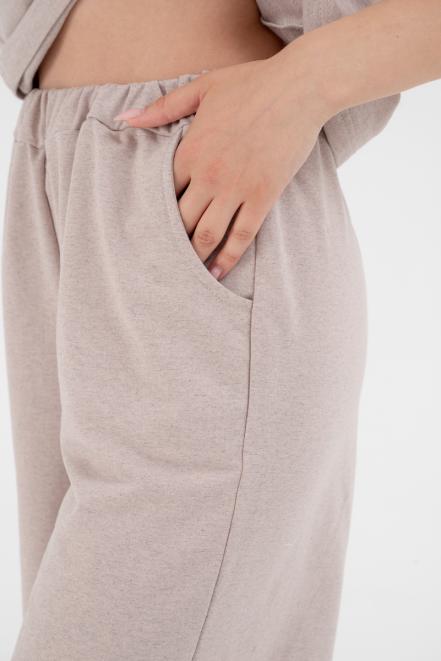Брюки женские из футера трехнитка с начесом Сова изумруд макси