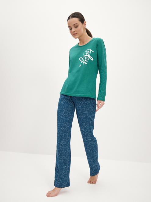 Пижама детская из джемпера и брюк без манжет из интерлока Сафари темно-синий полоса
