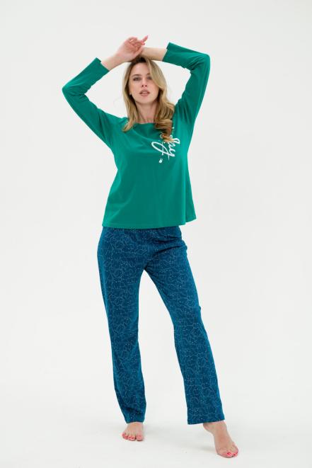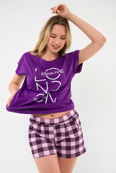 Пижама женская из майки и шорт из рибаны Эрика оливковый мартини