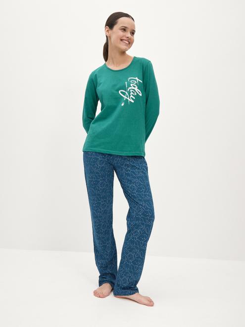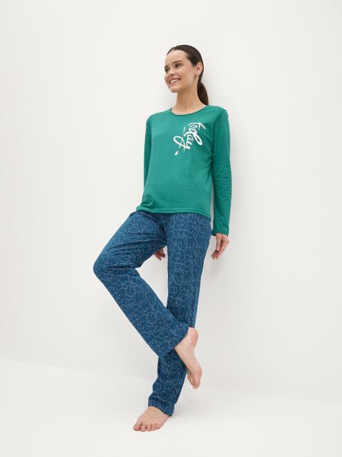 Пижама детская из кулирки пенье на манжетах Дрёма клетка синяя