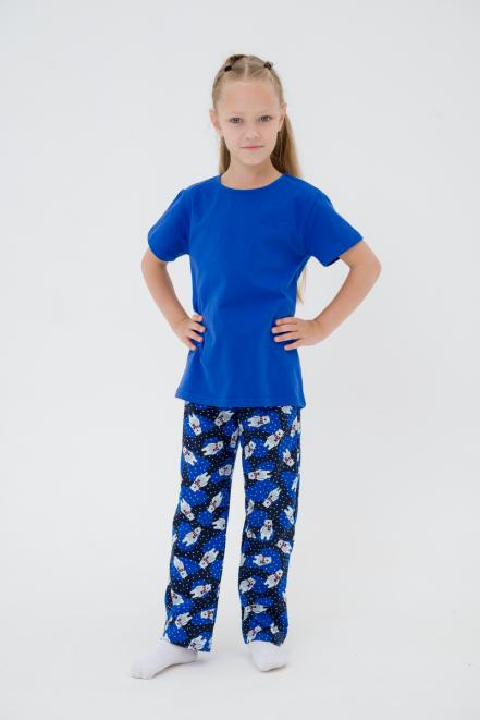 Пижама детская из джемпера и брюк без манжет из интерлока Сафари темно-синий полоса